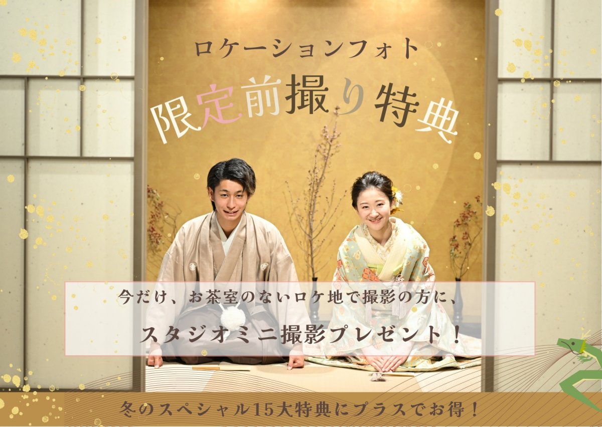 4月末までにお茶室のない和装ロケーションで撮影をされた方へ、スタジオ茶室での撮影を5カットプレゼント!