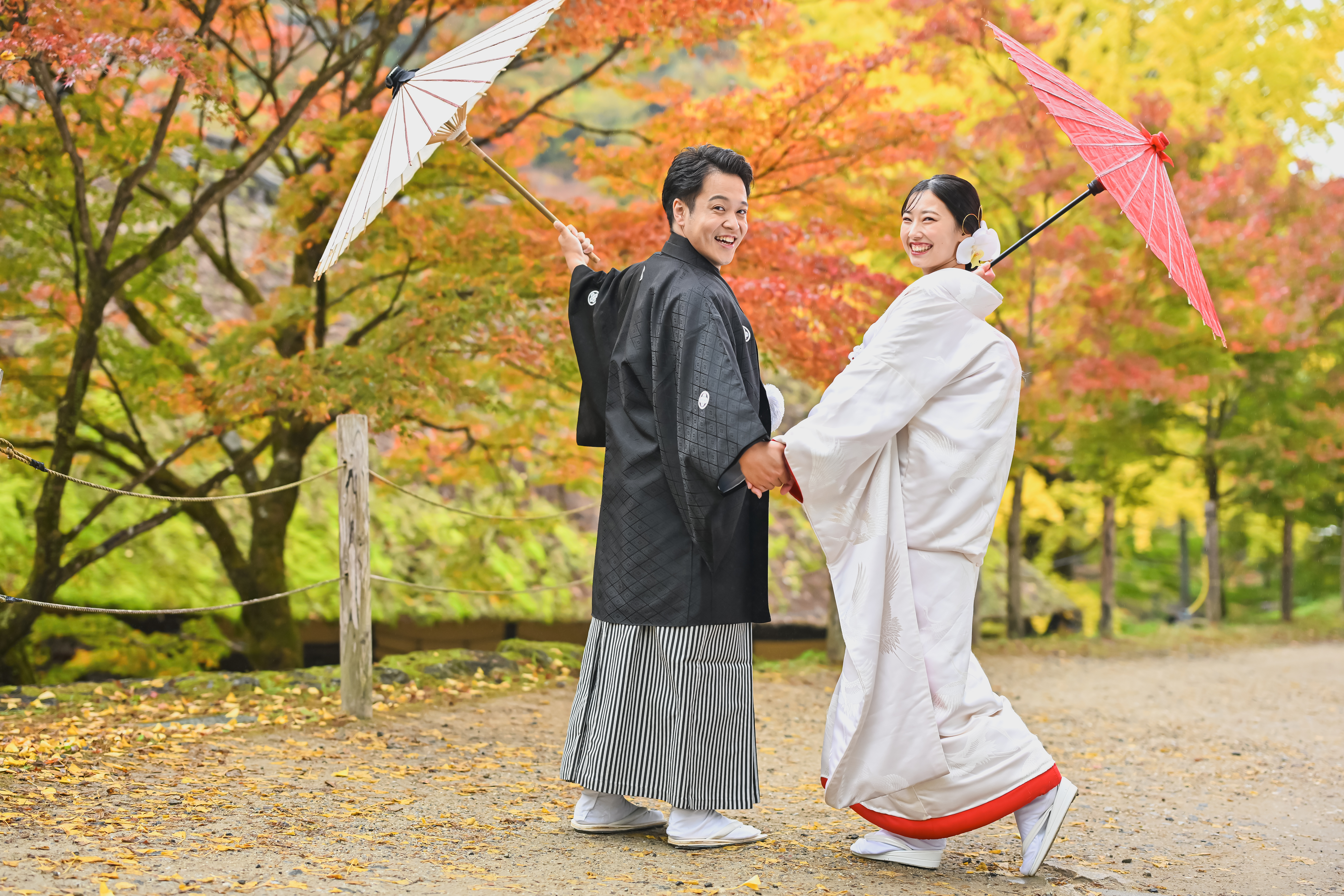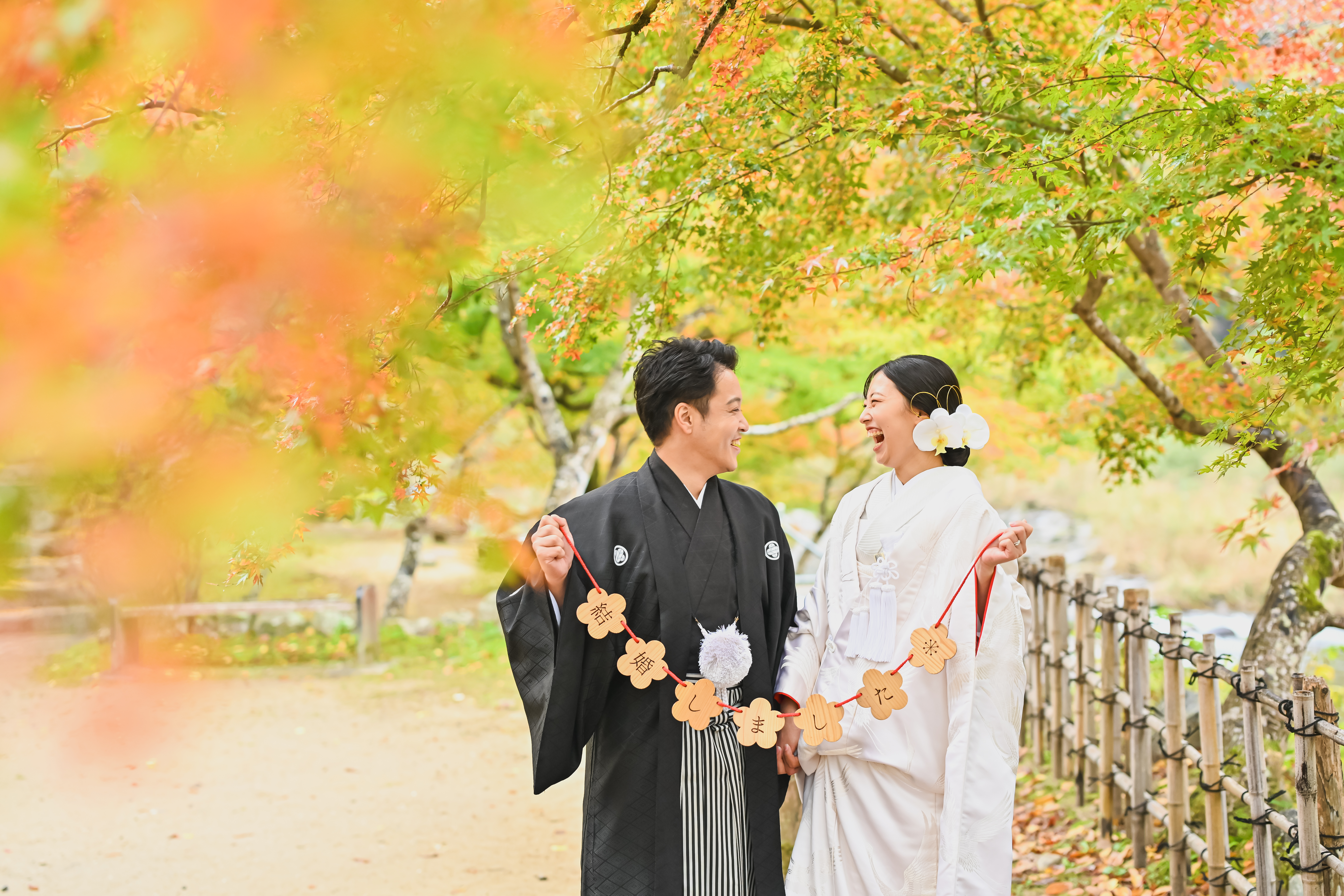 - 秋には一面が真紅に染まり、和装が映える幻想的な景観に。木橋や石畳、自然美が調和したロケーションで、四季折々の風情あるフォトウェディングが叶います。