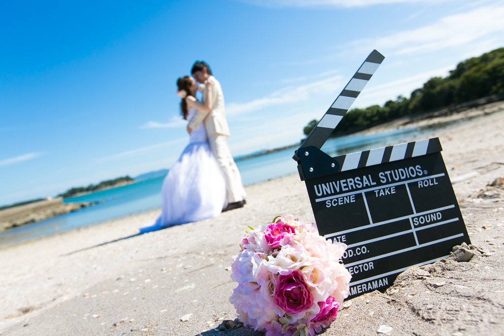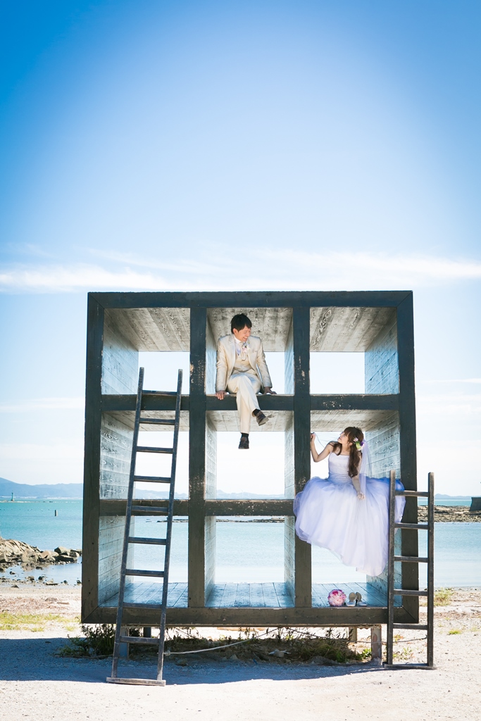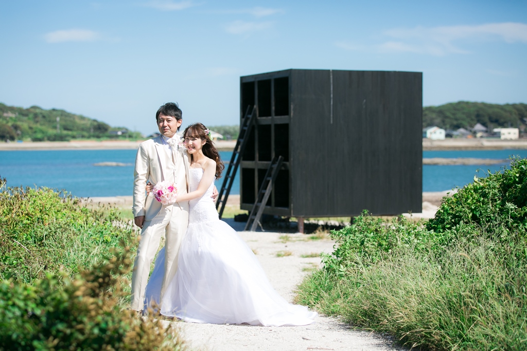 アートの島と呼ばれている佐久島での結婚写真。