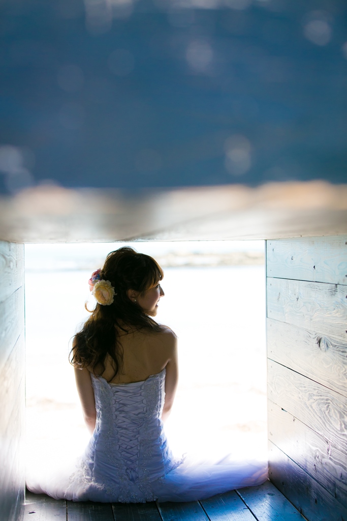 佐久島に到着したら、すぐにドレスに着替えてヘアメイクです。