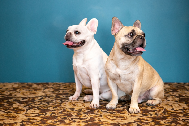 青い壁をバックにかわいいフレンチブル