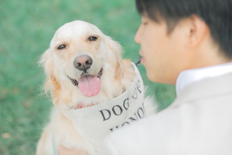 新郎を不思議そうに見つめるわんこ