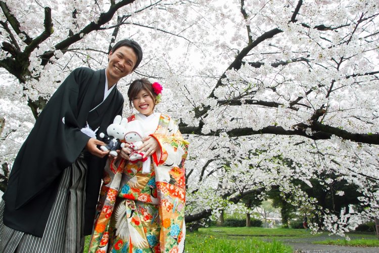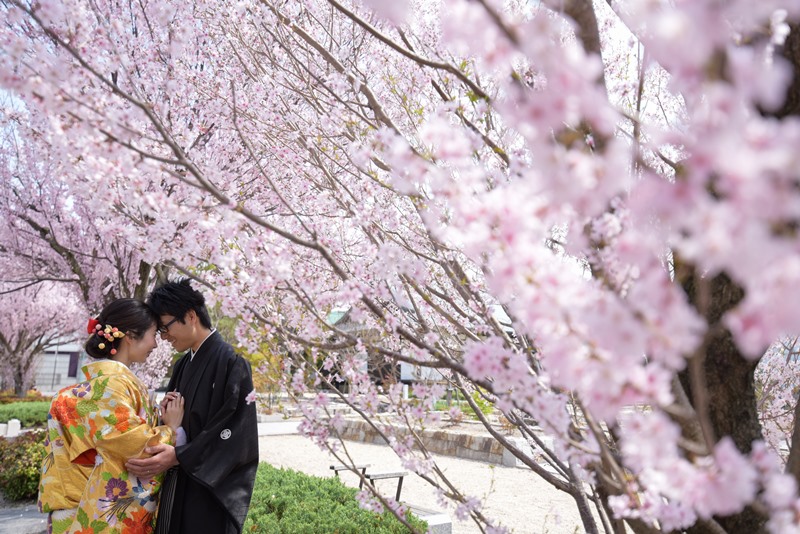 年賀状や結婚報告ハガキに時期が短い桜と写っていたら可愛いお写真ですし自慢ですよね!!