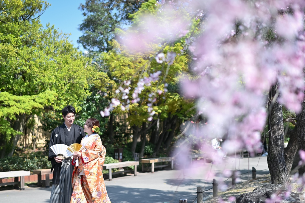 お二人で和服に身を包み、日本庭園での撮影はいかがですか?♡