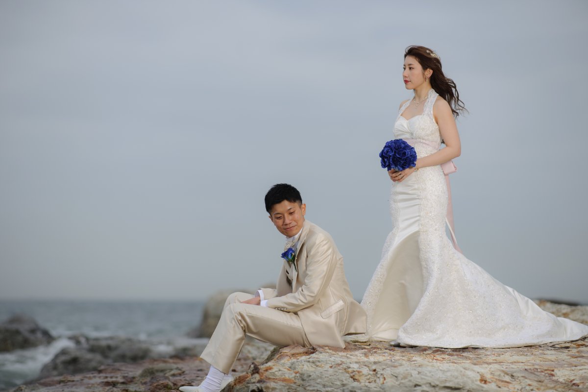 内海は岩場でも撮影が可能なので衣装によっても、雰囲気が大きく違ってきます。