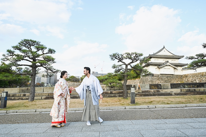 今では、海外からの観光客にも大人気の大阪城で、日本らしく和装で前撮りが出来ちゃいます♪