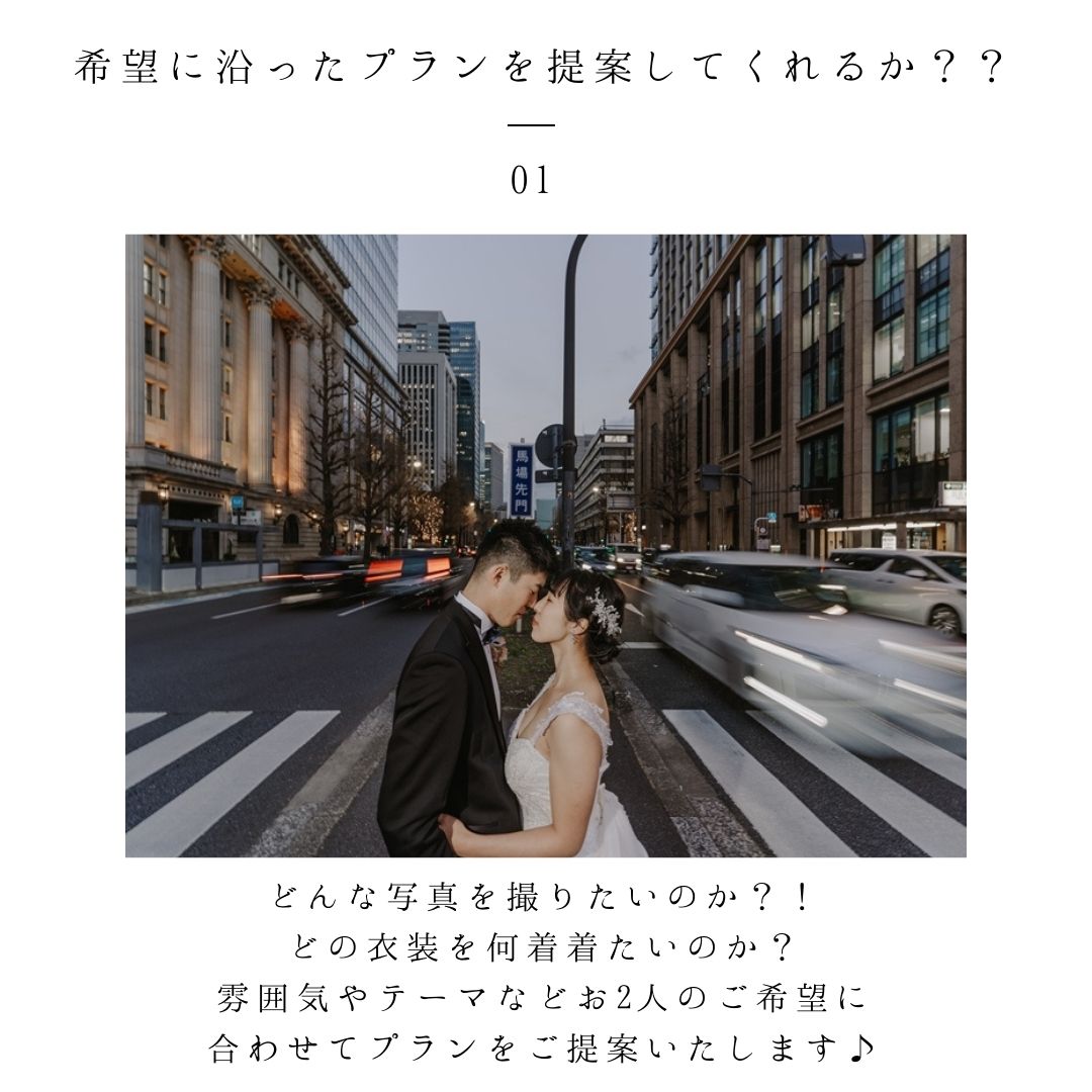どういった衣装を着たいか、どういった雰囲気のお写真を撮りたいか、
