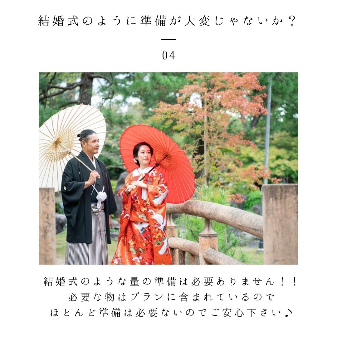 フォトウェディングでは、プラン内に必要なものがほとんど含まれているので