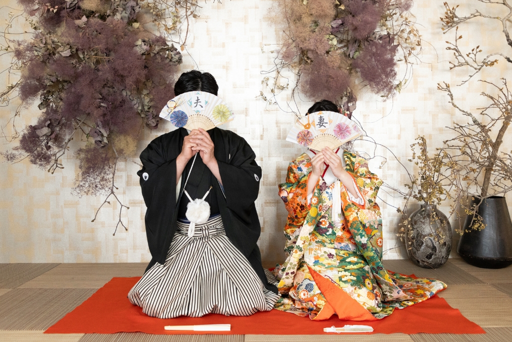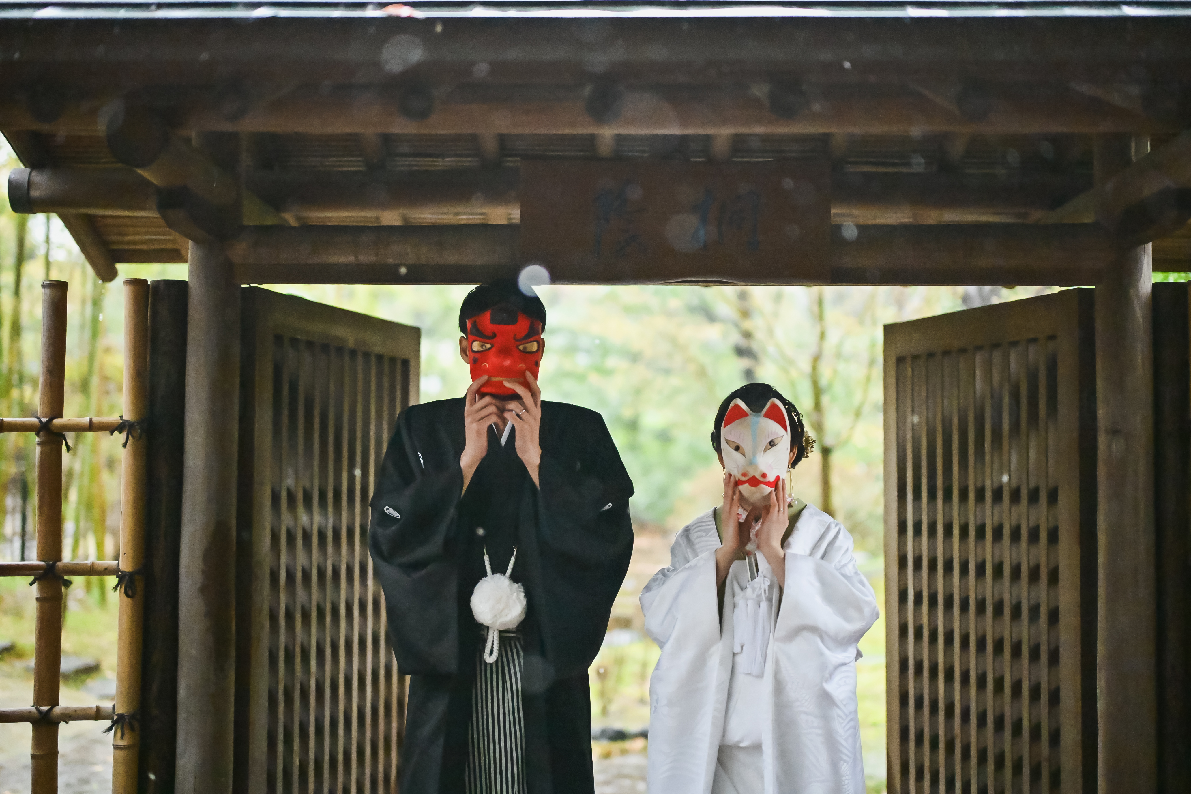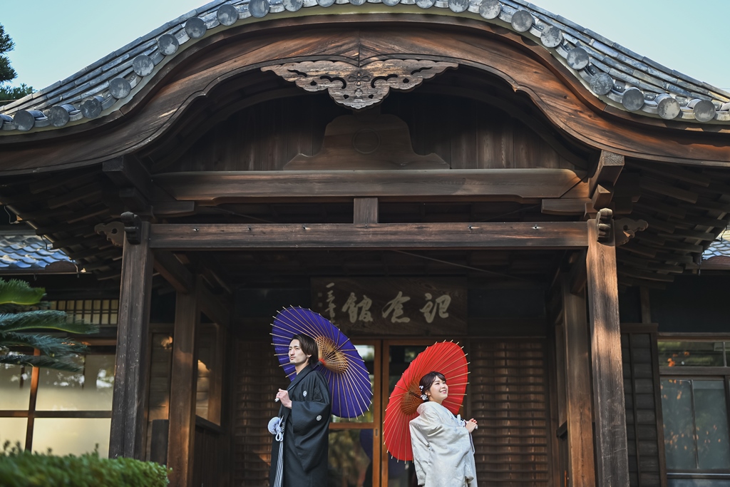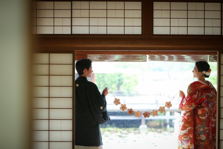 雨の日の和室で撮影する結婚写真には、穏やかな趣と深い風情があります。