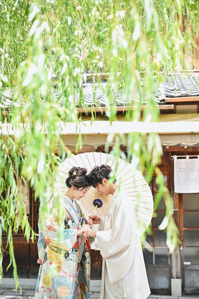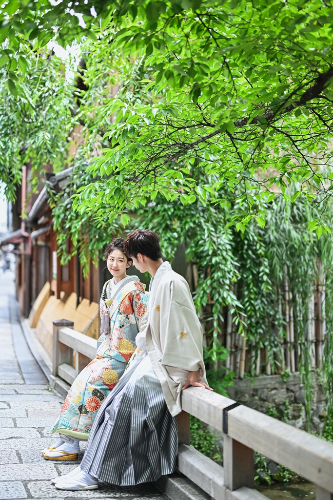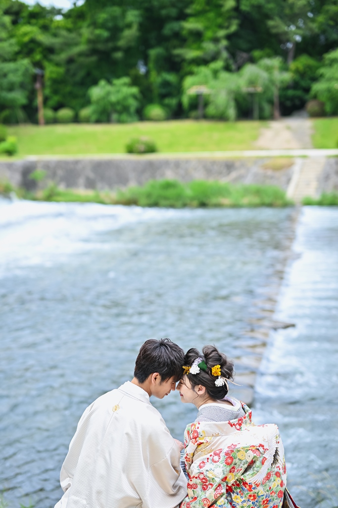 京都 祇園の前撮り。鴨川沿いの自然に囲まれてロケーション撮影!!