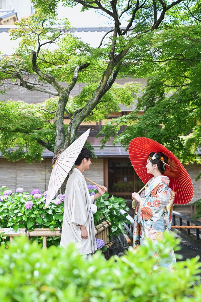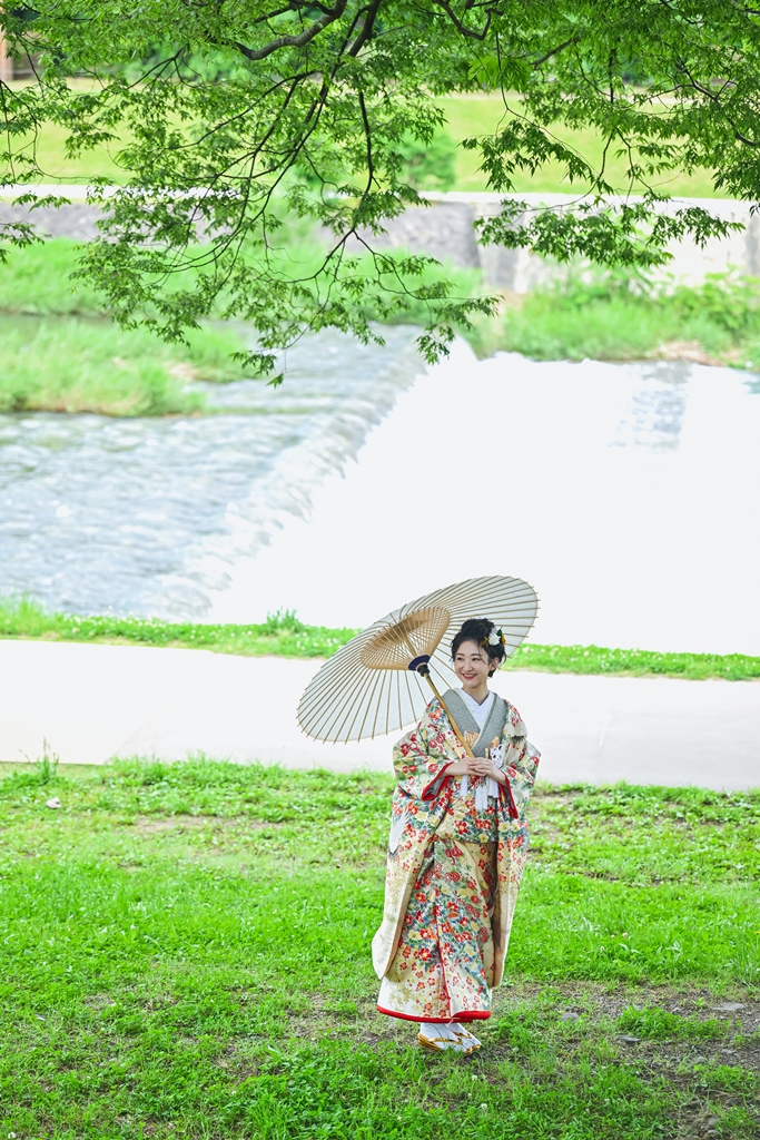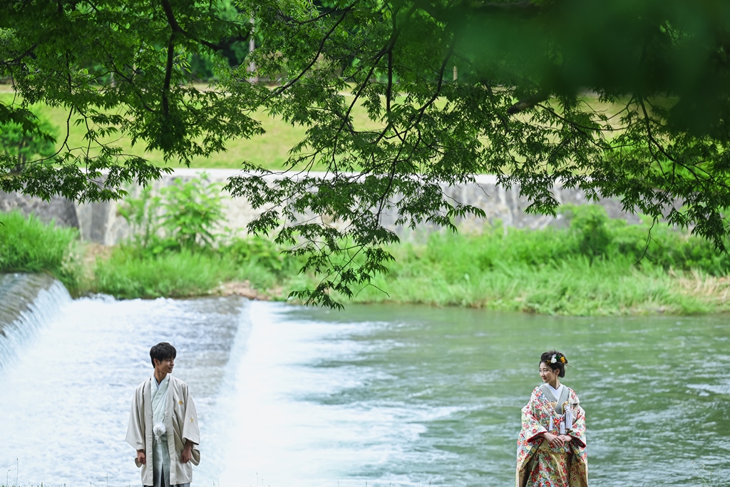 鴨川のエネルギーをたくさん感じられる自然に囲まれ、お2人の和装をより一層引き立て和装らしさを生み出します!!