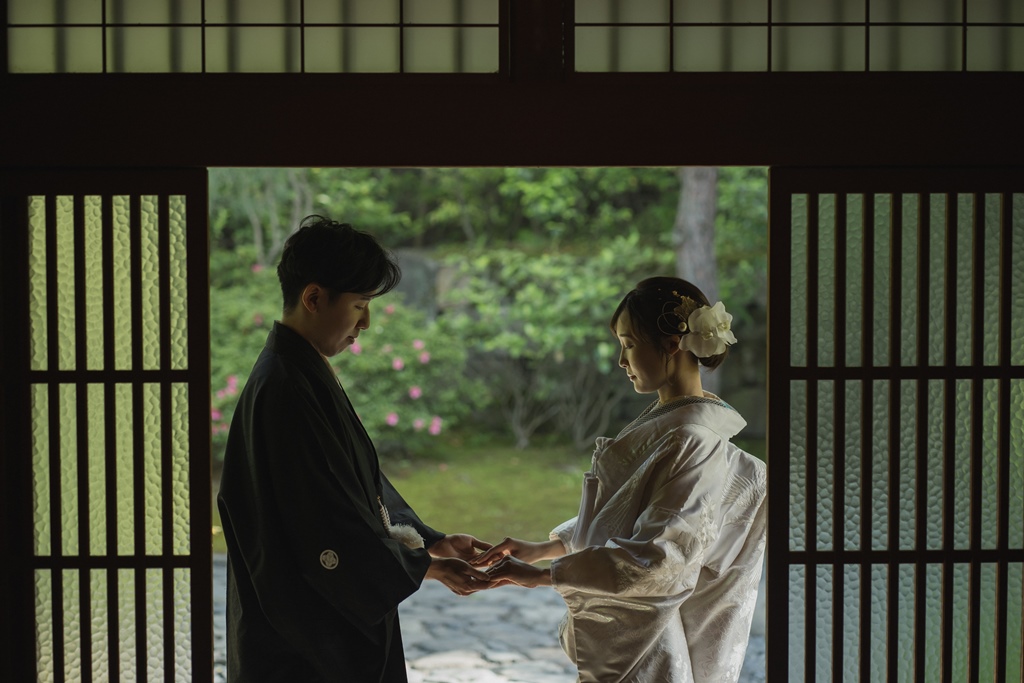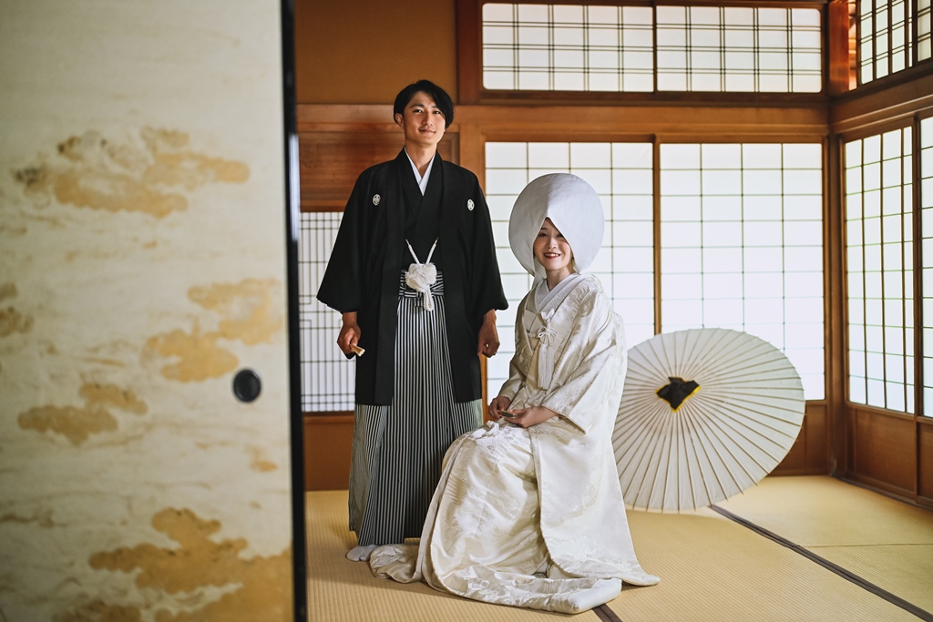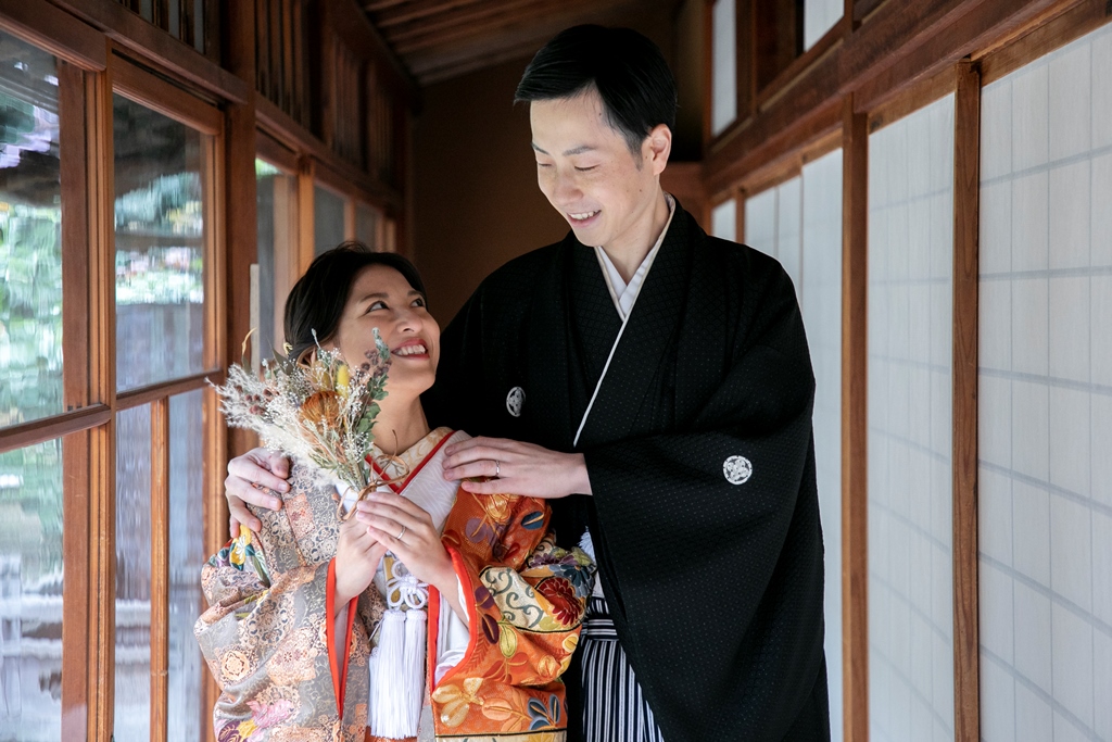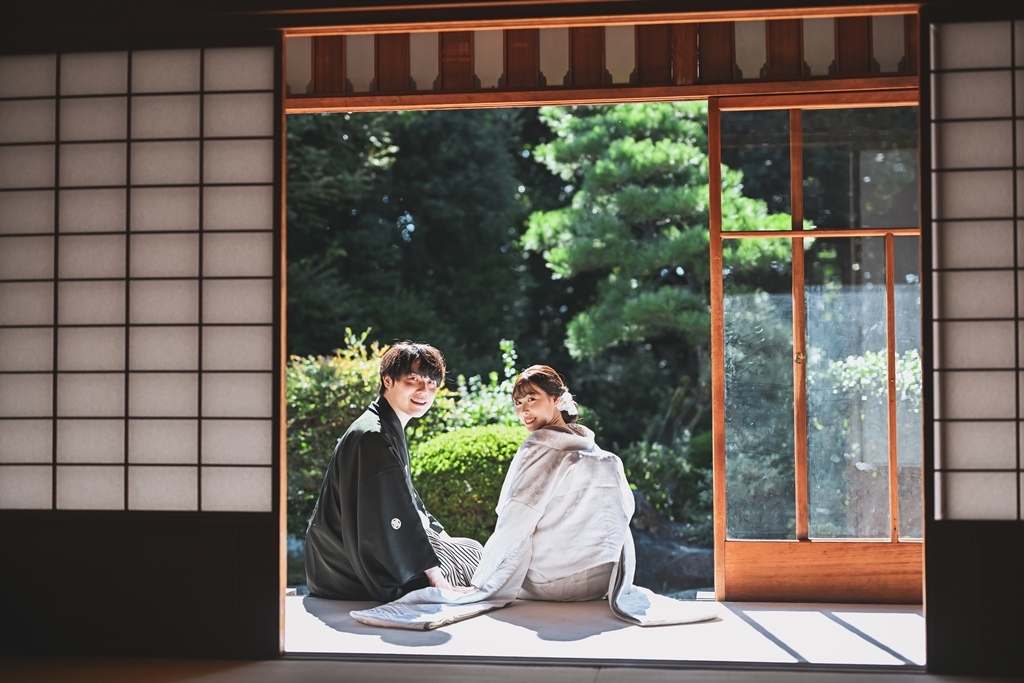 ⓷古民家風のお茶室が心地いい!和装が映える東山荘でフォトウェディング!