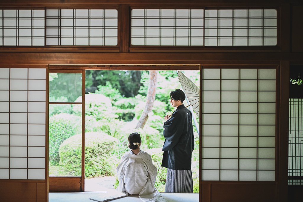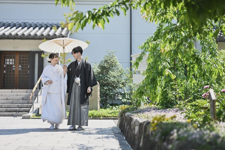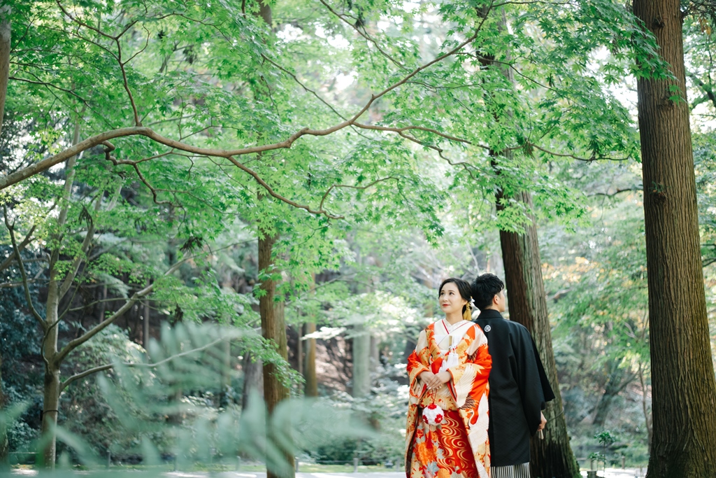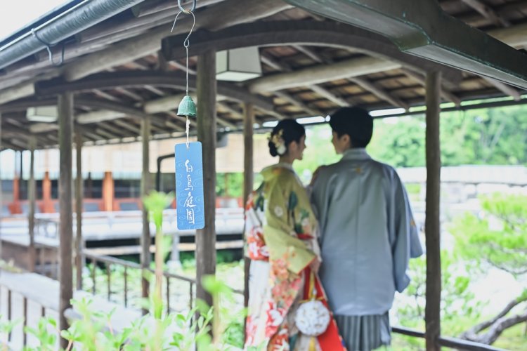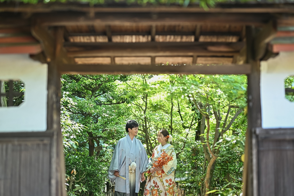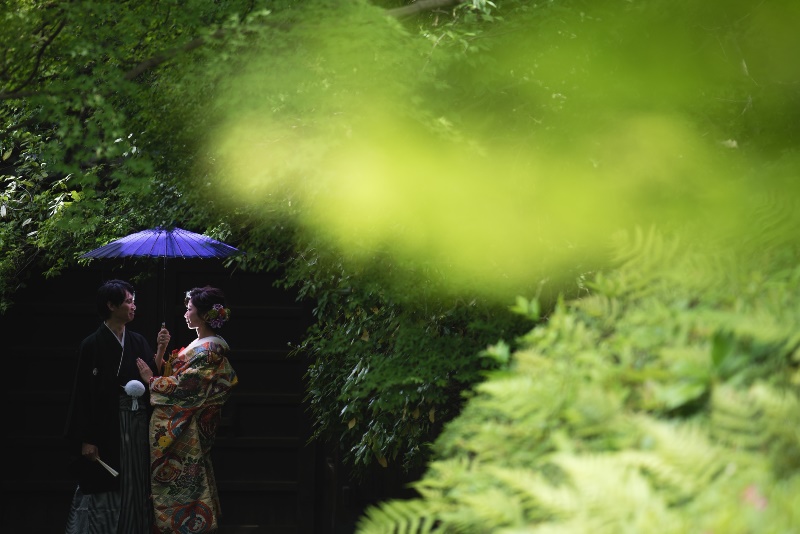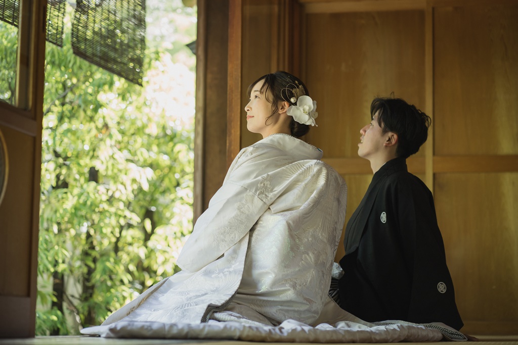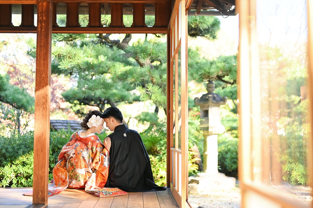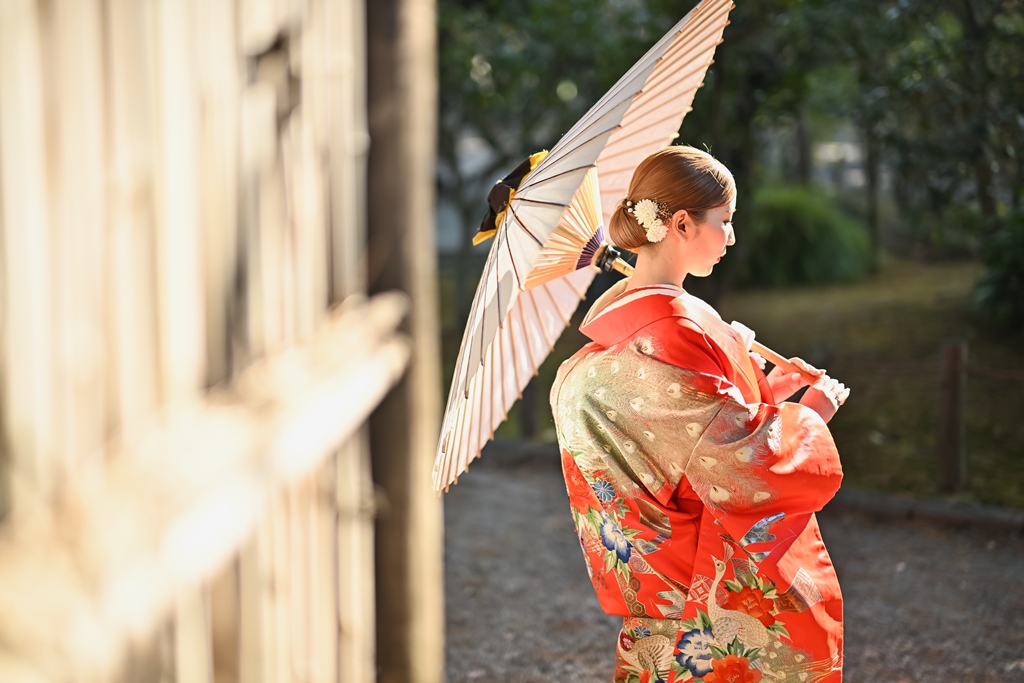 四季折々の自然に囲まれた庭園や、歴史を感じさせる建築を背景にすれば、凛とした美しさと物語性のある一枚に。