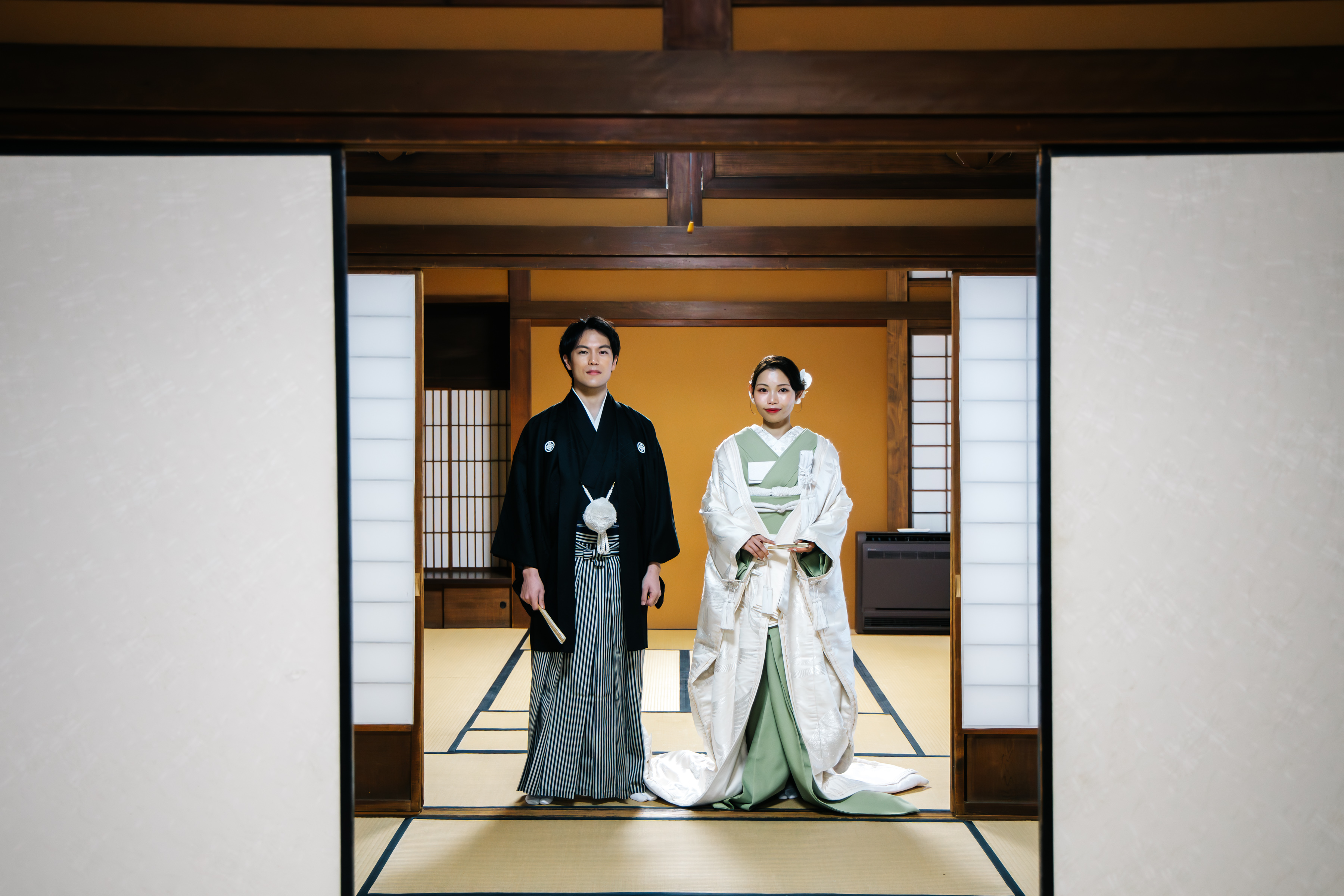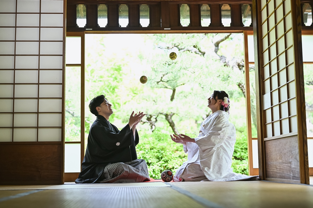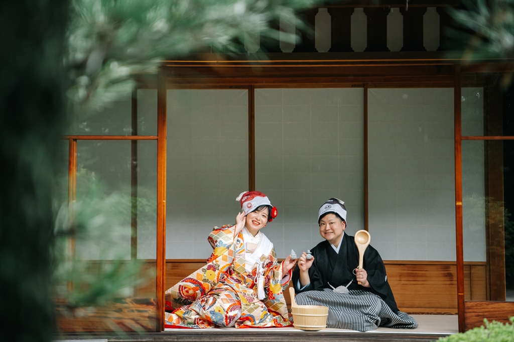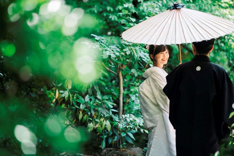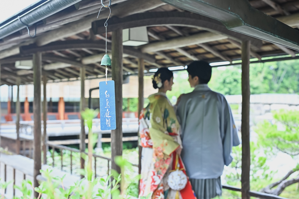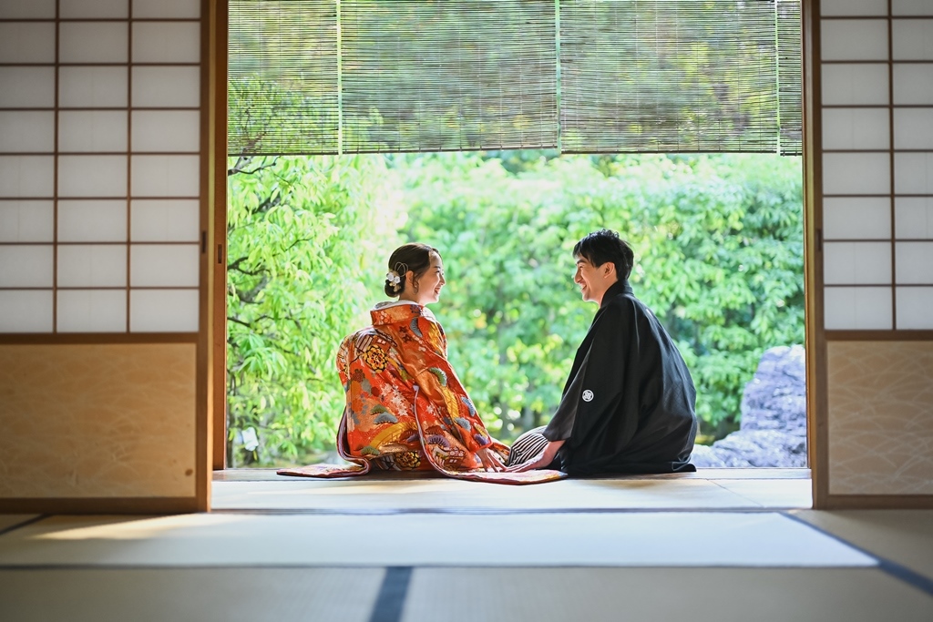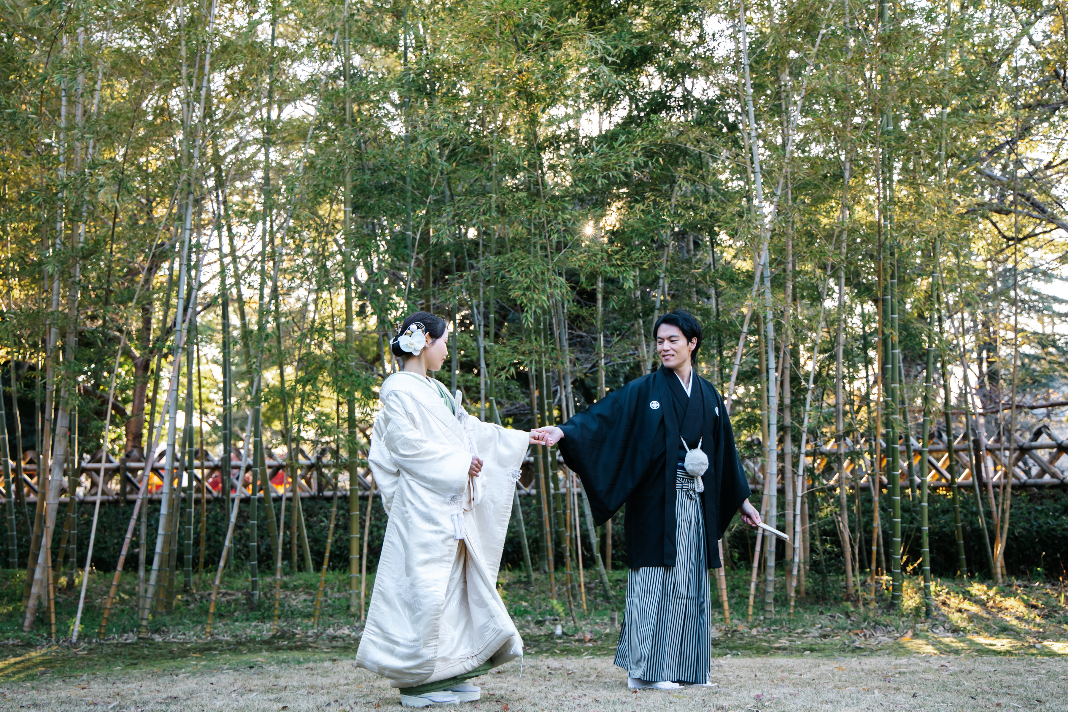 四季折々の自然に囲まれた庭園や、歴史を感じさせる建築を背景にすれば、凛とした美しさと物語性のある一枚に。