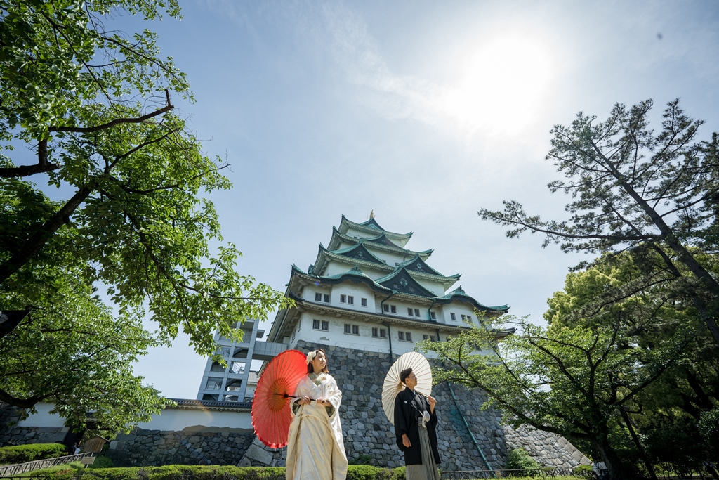 名古屋城も、和装前撮りの定番スポットとして人気を誇ります。