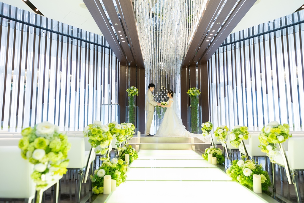 名古屋市にあるチャペルは、ガラス張りの美しいスポット。