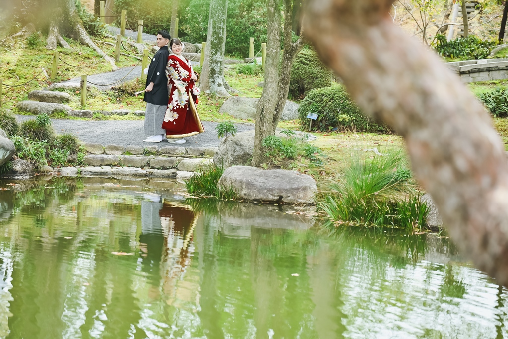 梅、桜、藤の花、紫陽花、紅葉など、その時々の自然を感じながら、中村公園でゆったりと和装撮影はいかがでしょうか。