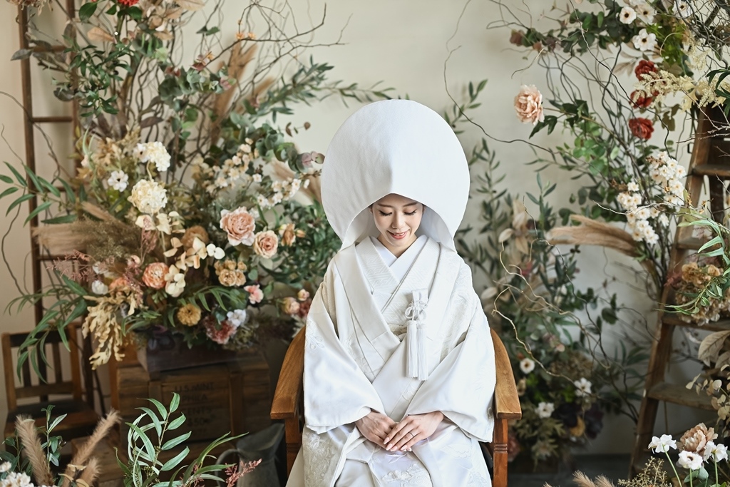 婚礼衣装のなかではもっとも格式が高い衣装である白無垢。