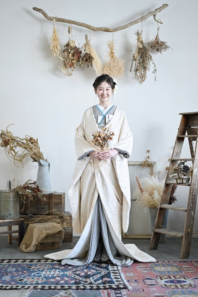 染めや刺しゅうで模様を表現するので華やかさが際立ち、白無垢とはまた違った着こなしができます。