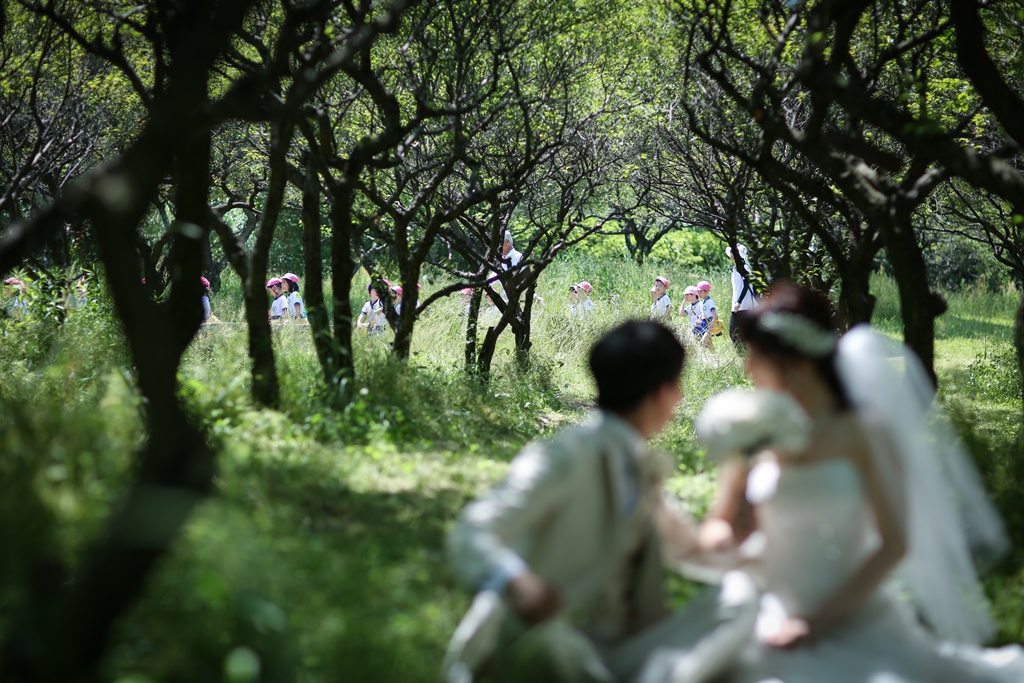 緑のトンネルの中で撮影したような撮影も人気のひとつ!