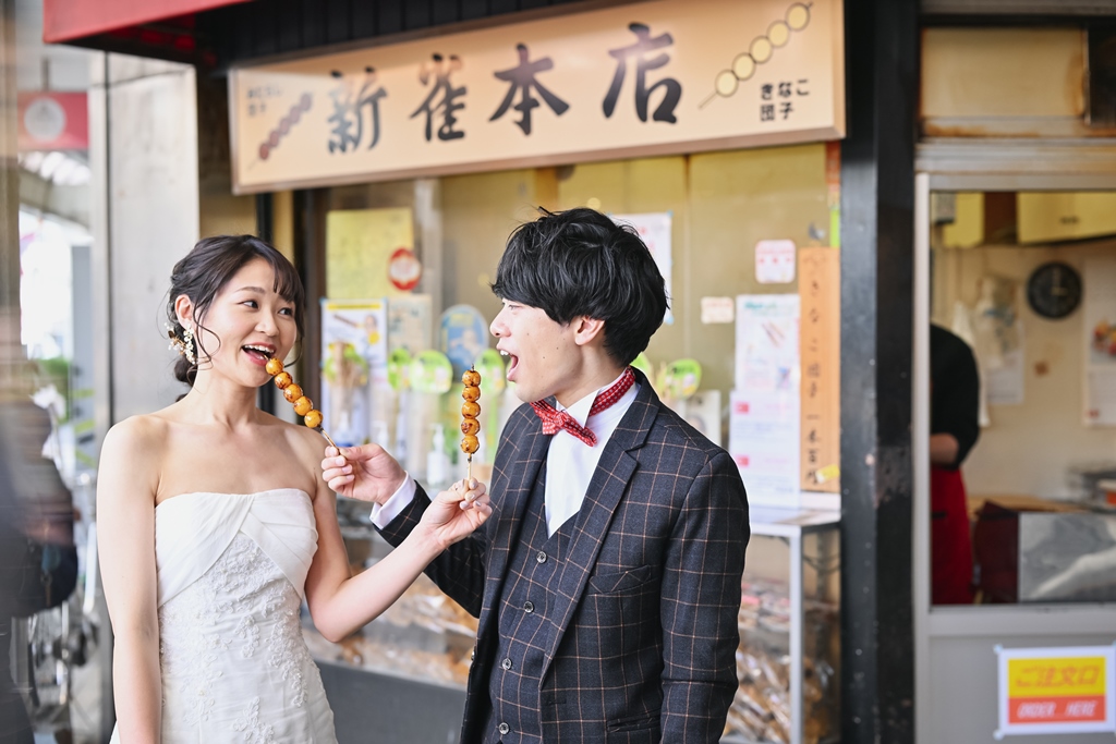 お2人が歩く街並みや、味わい深いグルメを共に味わい、大切な思い出を形にする、そんな他とは一風違った撮影に。