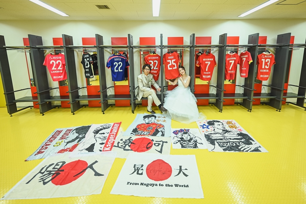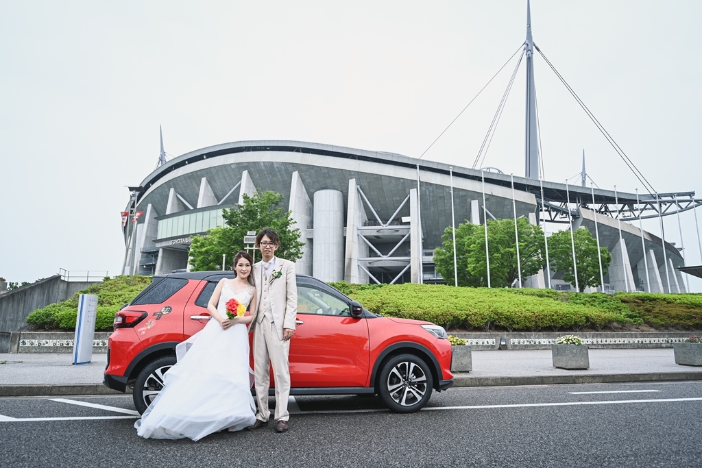トヨタスタジアムでの撮影は、サッカーの熱狂的な雰囲気をお2人だけの特別な空間で体験できる贅沢プラン。
