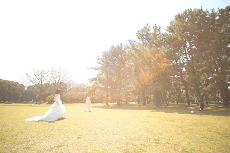 シャボン玉やサッカーボールで遊んだりと公園ならではの撮影で