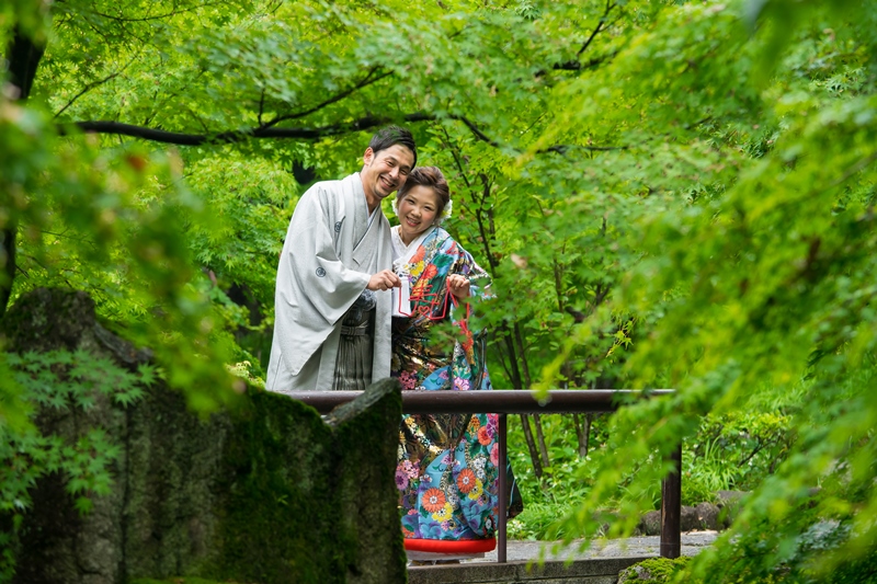 雨上がりの新緑が更に色鮮やかに綺麗ですね。お二人ともとても楽しく撮影をしていただき