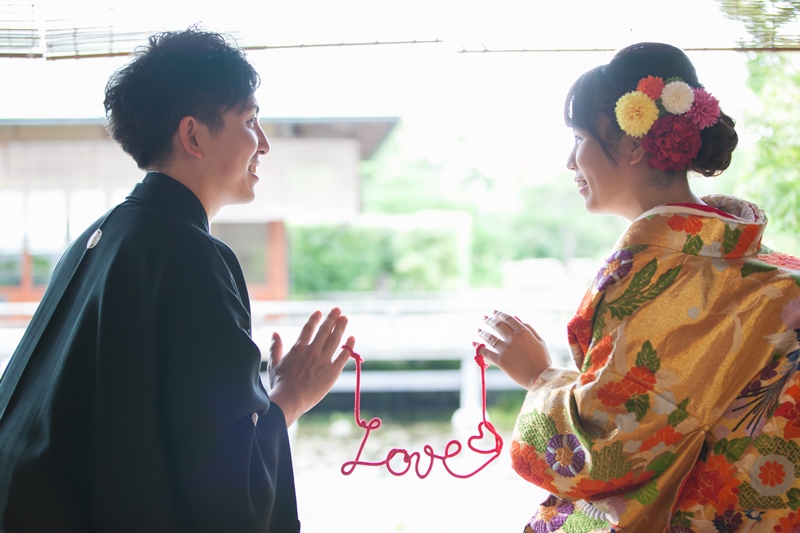趣のある白鳥庭園での和装前撮り
