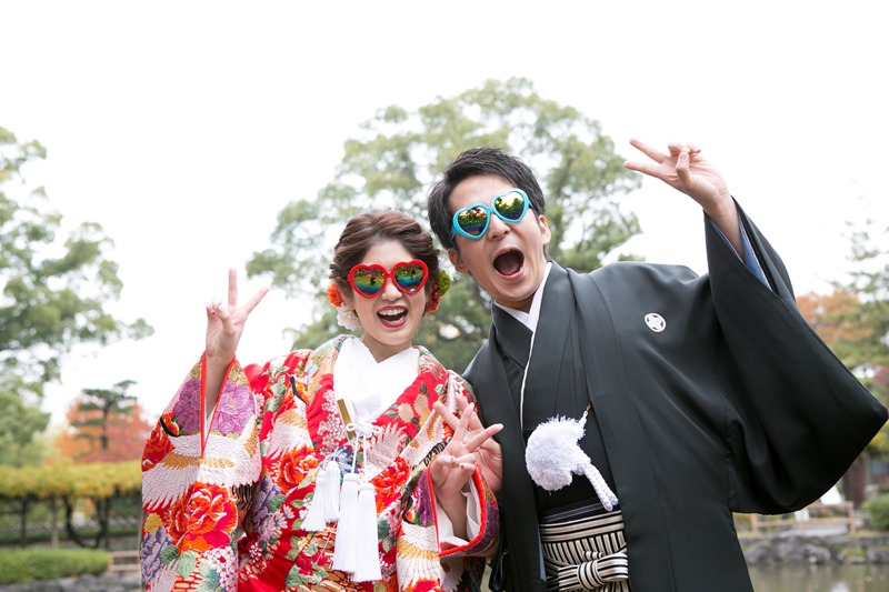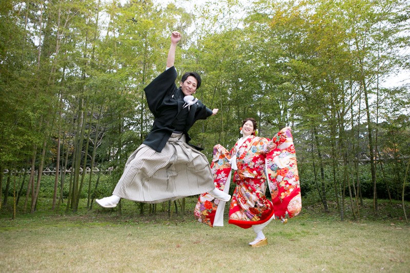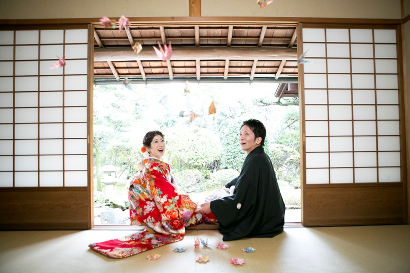 しっとりしたポーズから鶴シャワーなど小物を沢山使って