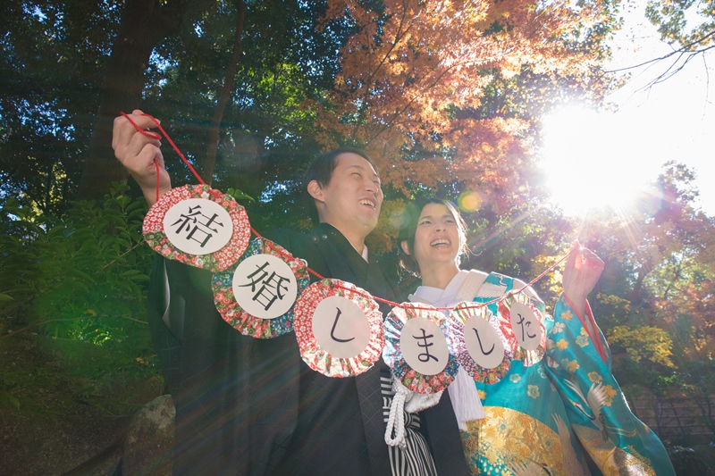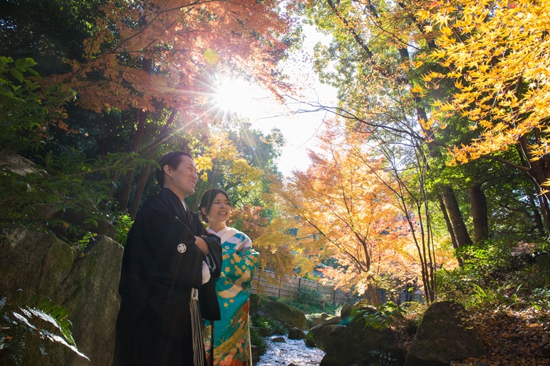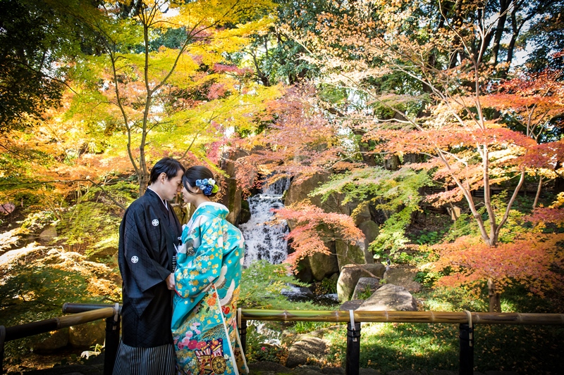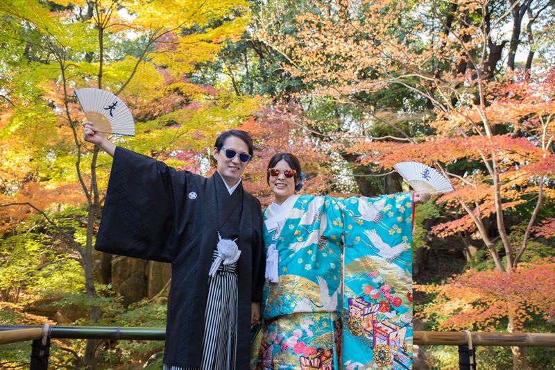紅葉が色鮮やかな徳川園にて和装撮影