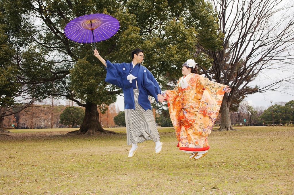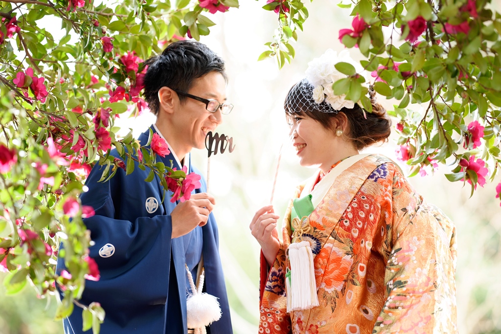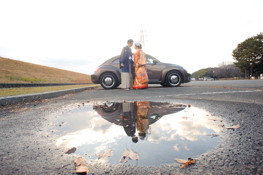 愛車と一緒に撮った和装結婚写真
