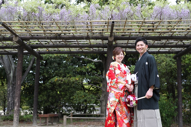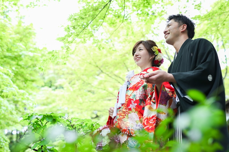 庭園の木々の緑にも負けないくらいのステキな笑顔のお二人でした!