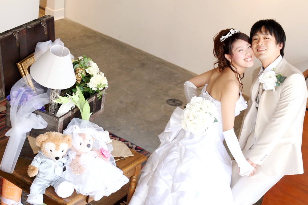 ウェディングダッフィーと幸せなふたりの前撮り撮影♡