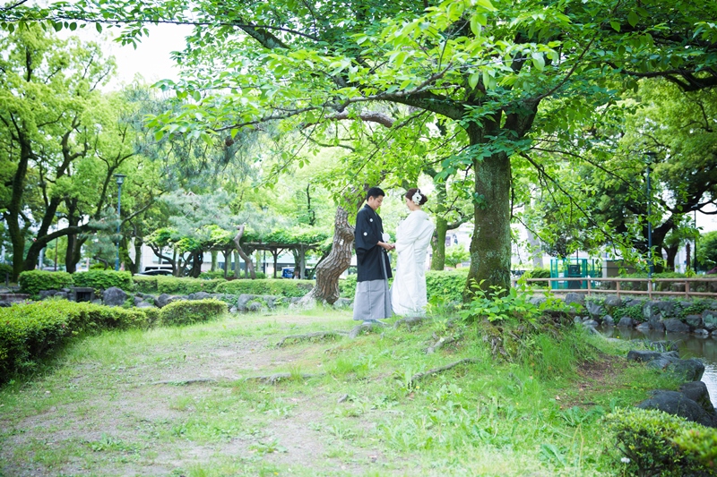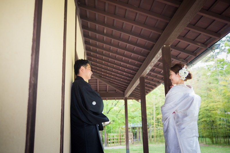 お天気も良く色鮮やかな緑の中に白無垢がよりキレイですね!