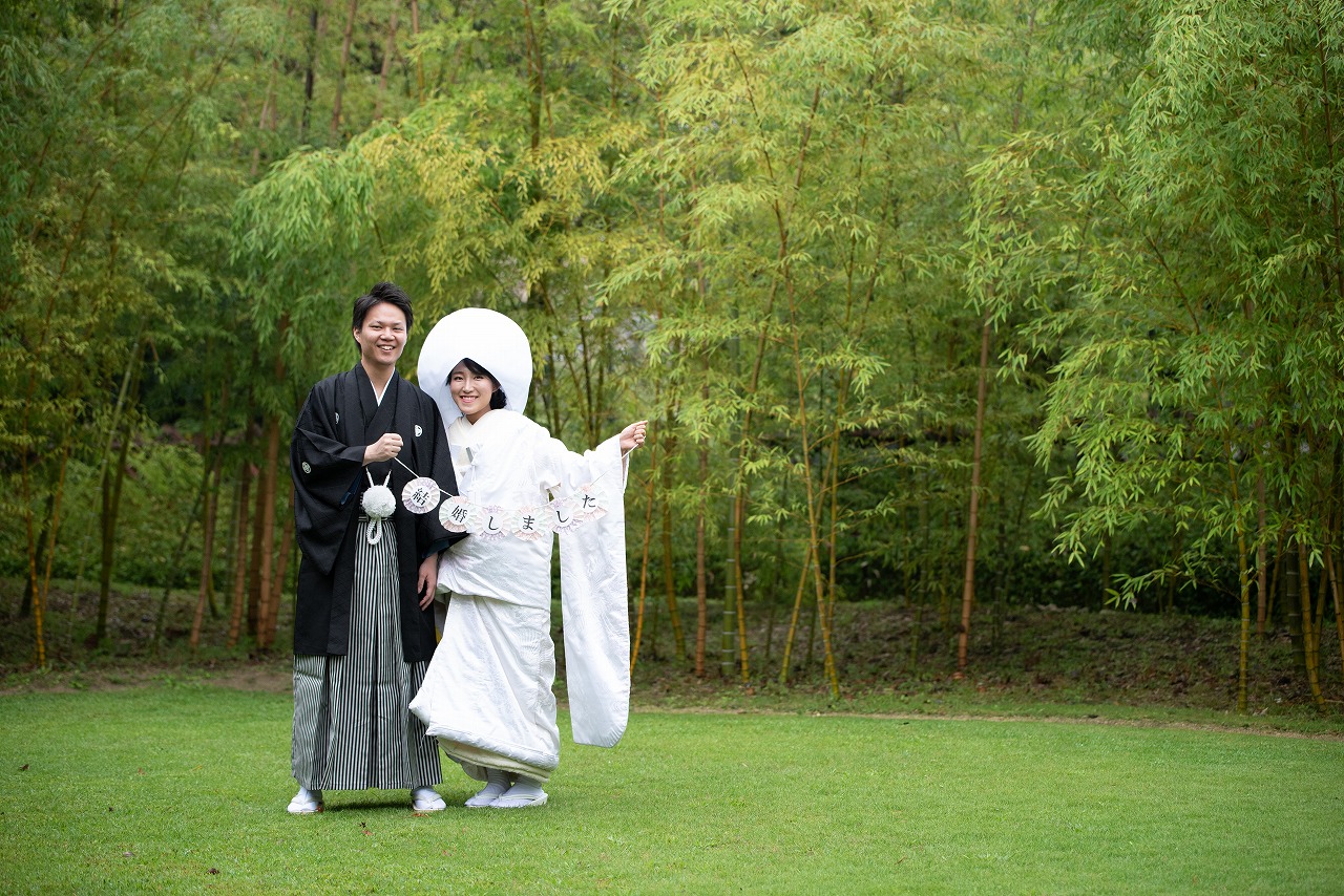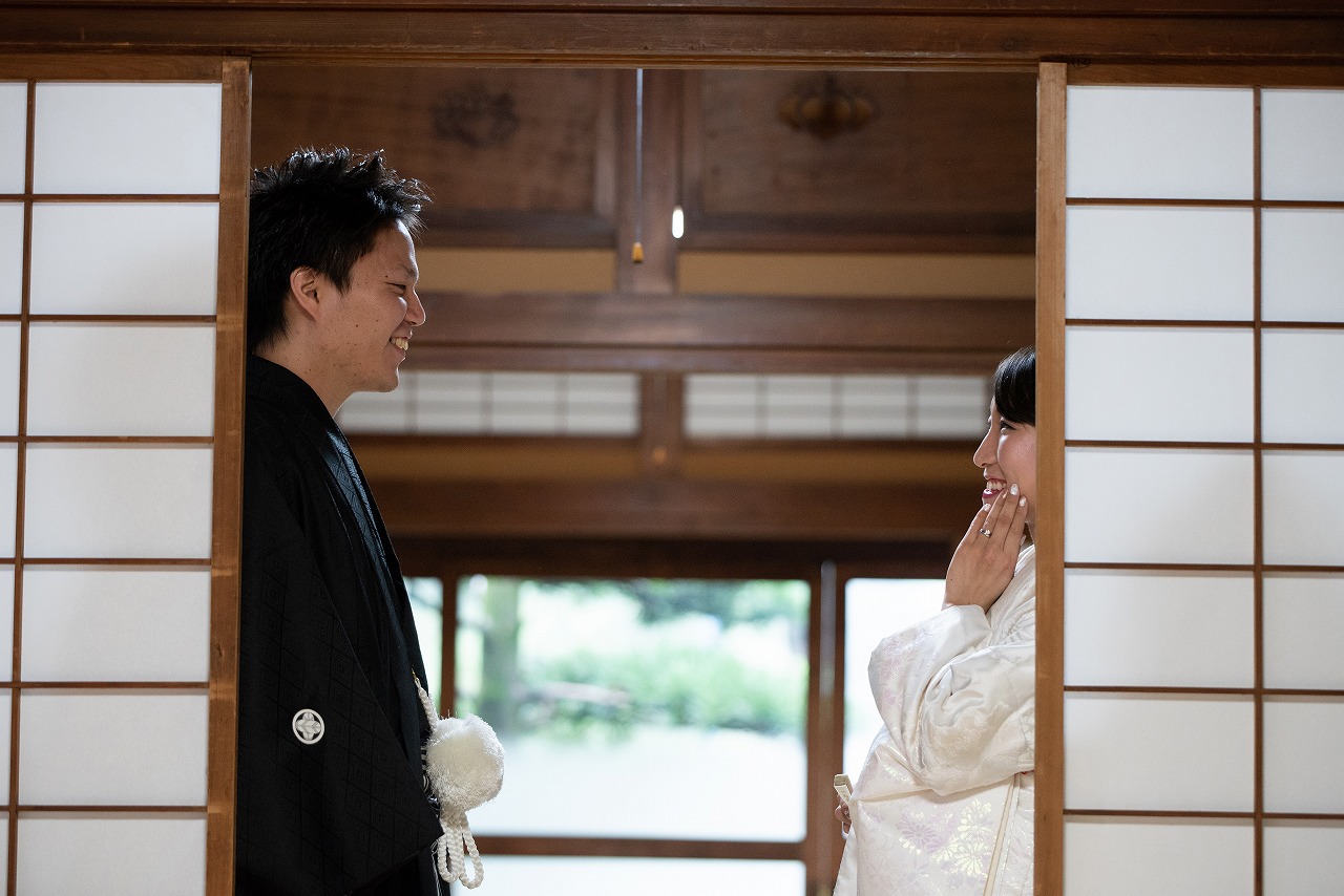 白無垢姿に撮影の合間に綿帽子を付けての姿も一段と美しいです。