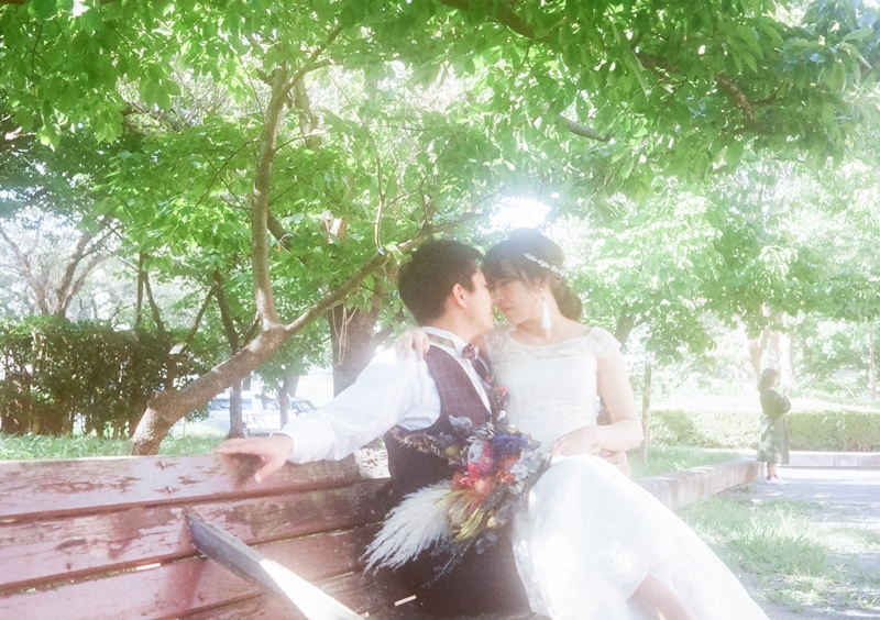 またお天気もよく外での撮影でも緑の中に温かい光に包み込まれるようにお二人の自然な姿もいいですね!