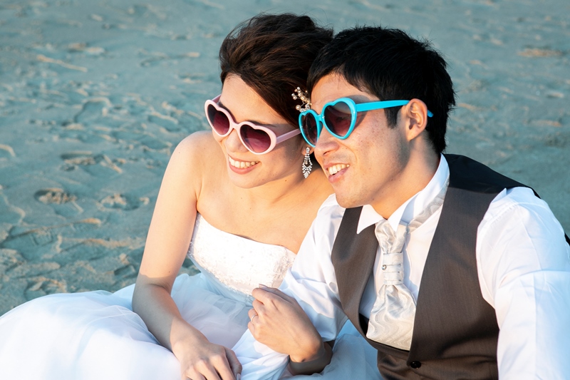 サンセットに輝くマリッジリング