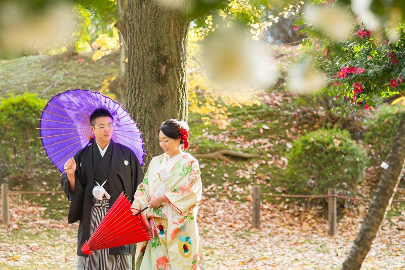 紅葉に彩られた名古屋城での前撮り撮影