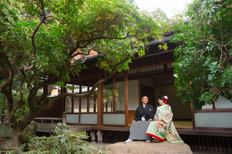 うすいグリーンの色打ち掛けもよくお似合いでした。撮影もリラックスしながら撮影して頂けてよかったですヽ(´▽`)/