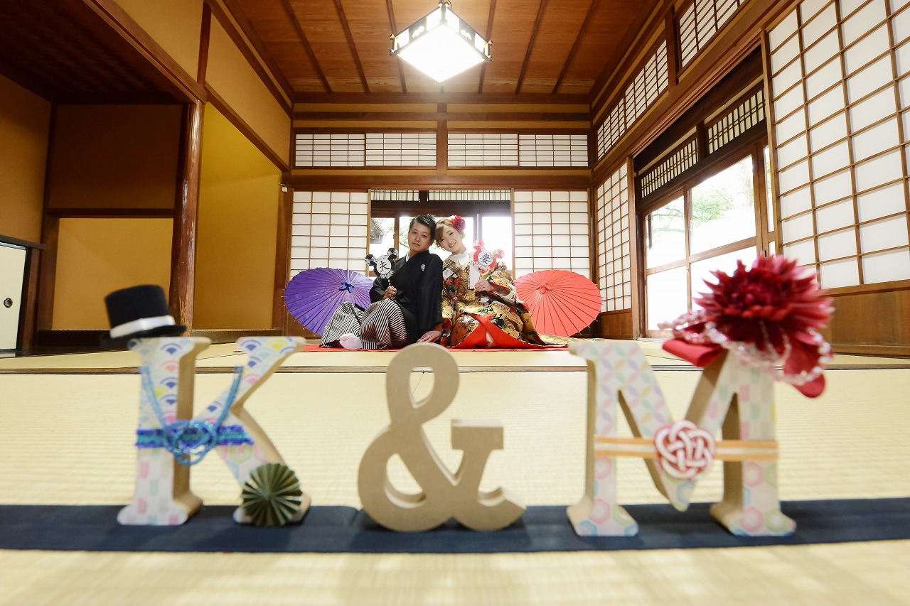 新郎様も紋付をかっこよく着こなしていてお二人ともステキでした!!手作りのアイテムも可愛く様々なポーズをして頂きありがとうございます。