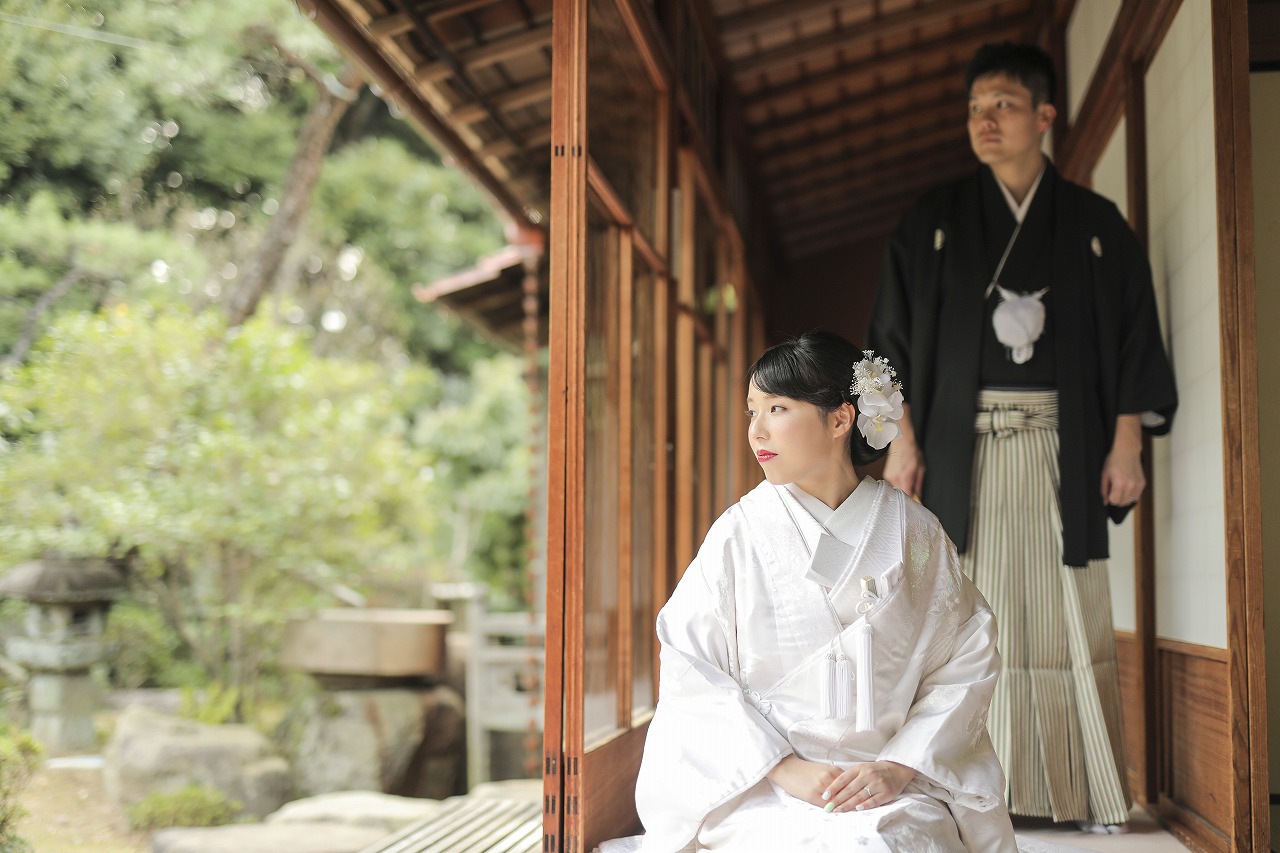 和装は白無垢でしっとりつややかに。