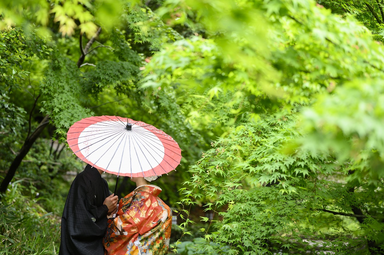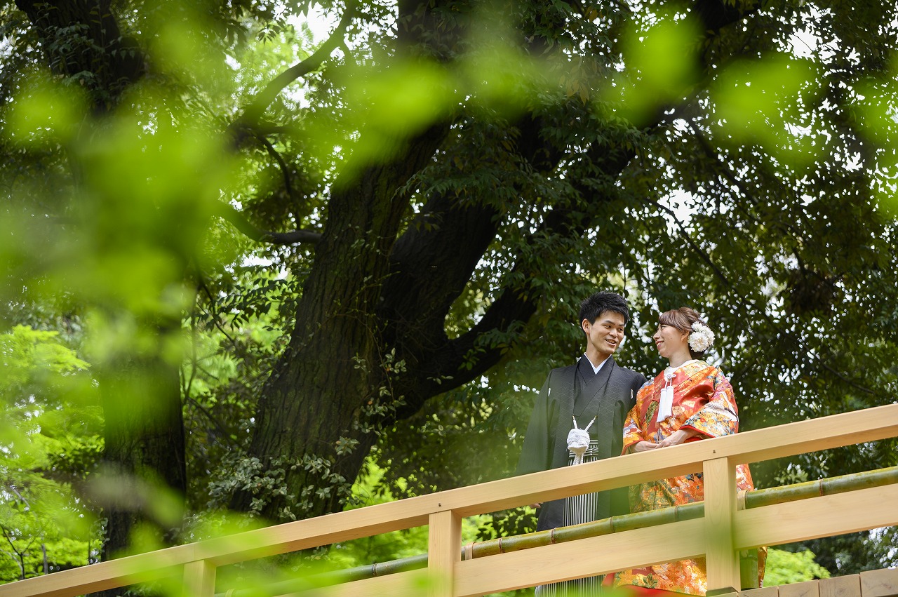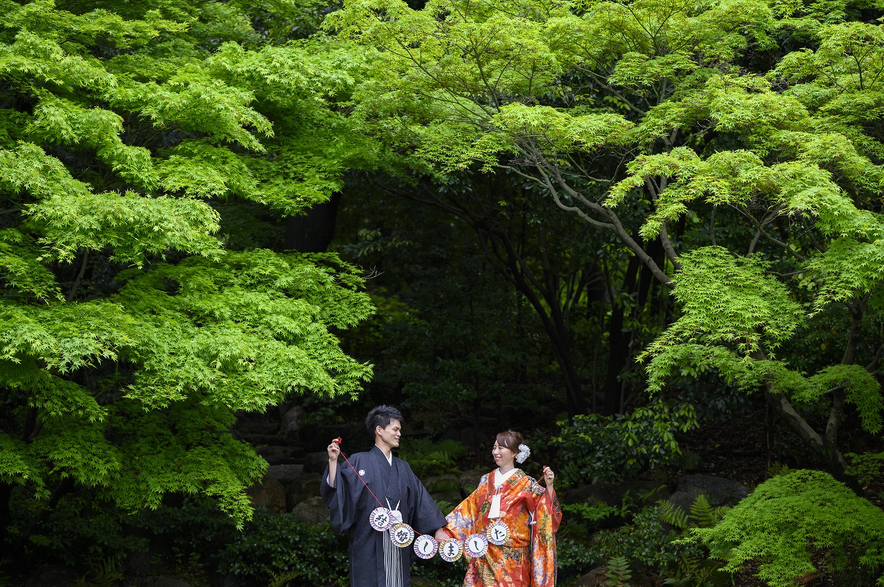 奥深い緑に包まれた「徳川園」での前撮り