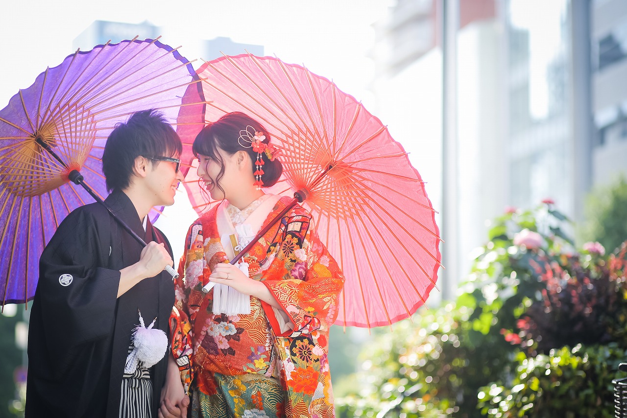 初めは緊張気味のお二人も貸し切りのスタジオでナチュラルな笑顔も撮影できて楽しい時間に(^^♪また洋装、和装と髪型もがらりとかえて違った雰囲気で素敵でした!!