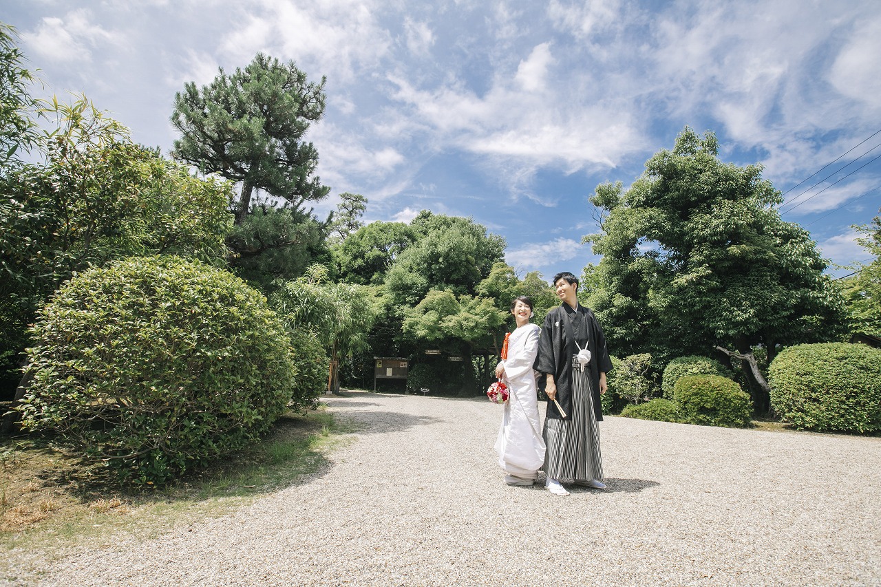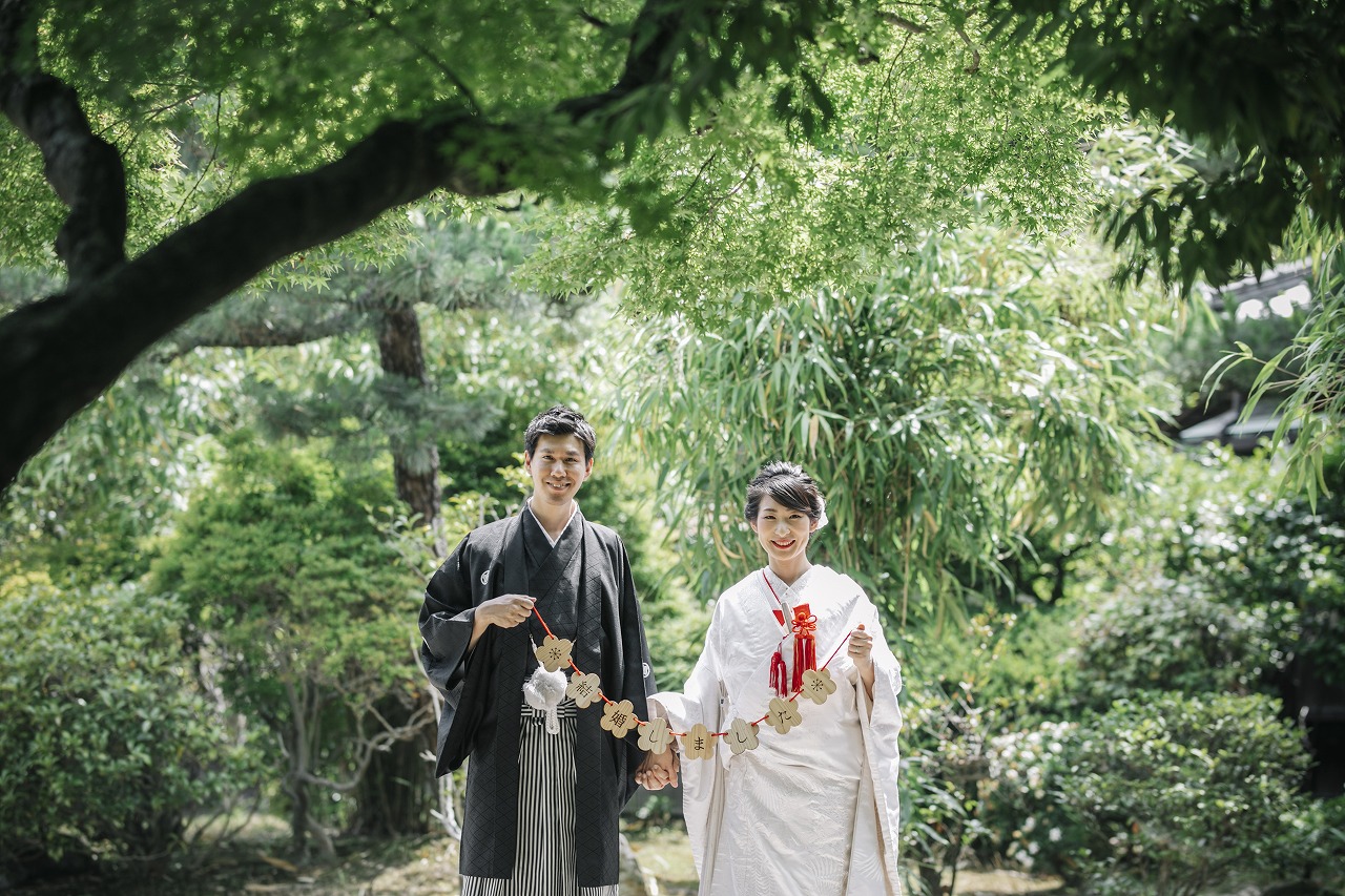 緑も濃く色鮮やかな中に新婦様の白無垢姿がパッと目を引く美しさでした!!