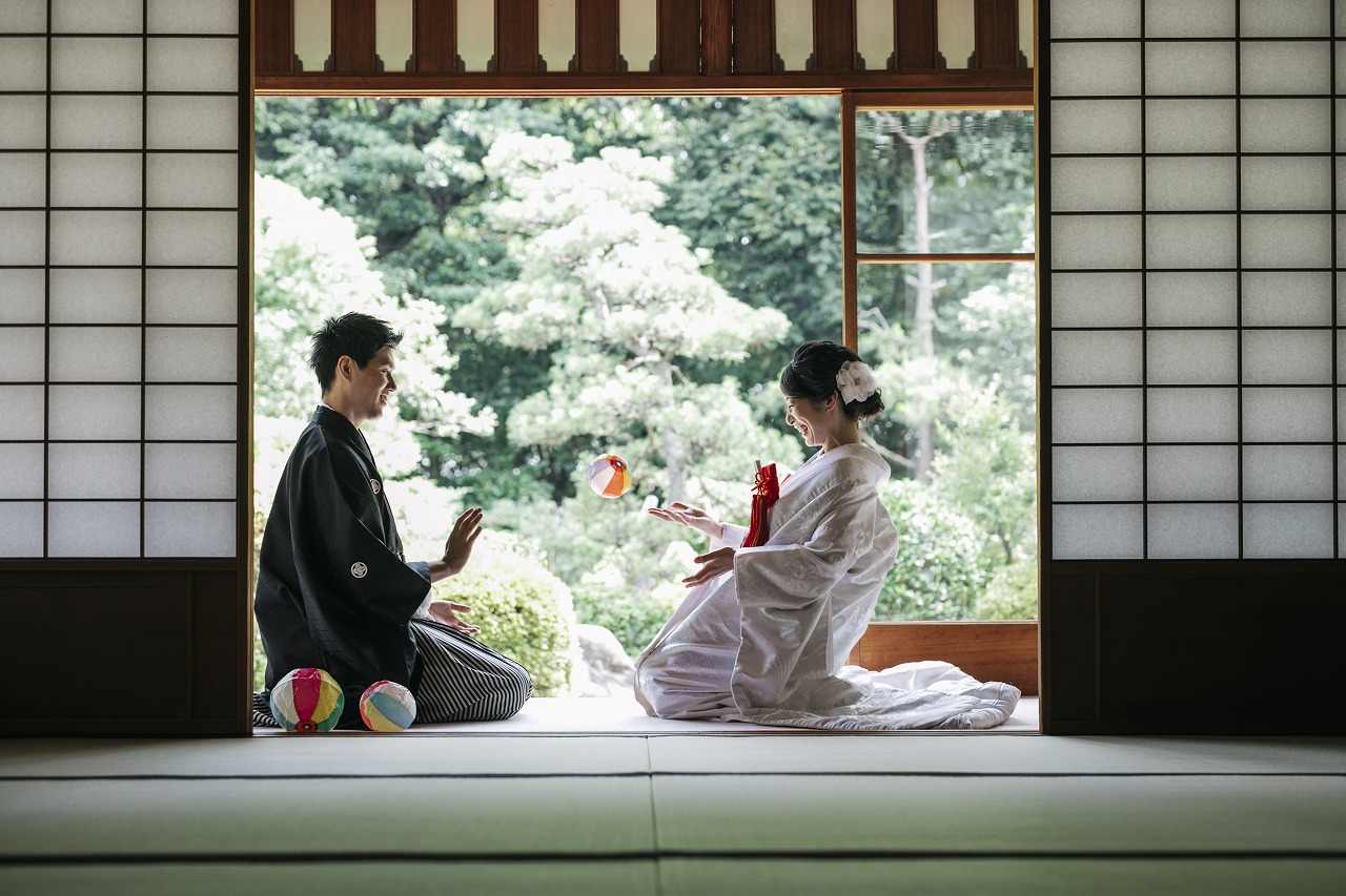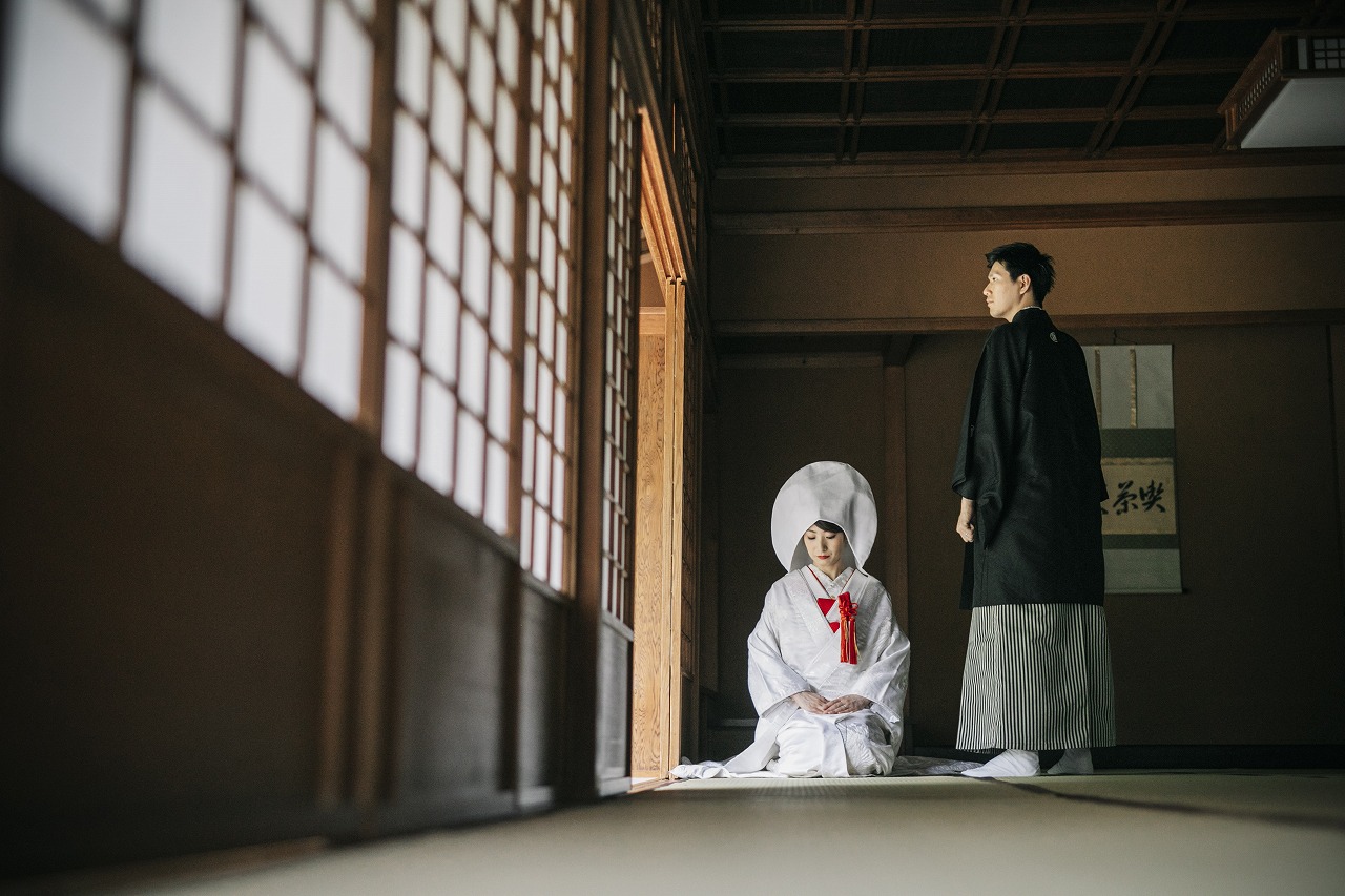お茶室内では洋髪綿帽子をお召しになりしっとりと大人っぽく。どのお写真も素敵なものばかり!ぜひご家族様、ご友人の方にもお写真見せてあげてください!!