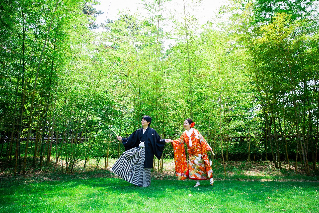 赤色の綺麗なお衣装と中村公園の緑がとても綺麗でどのお写真もとても素敵でしたね♡