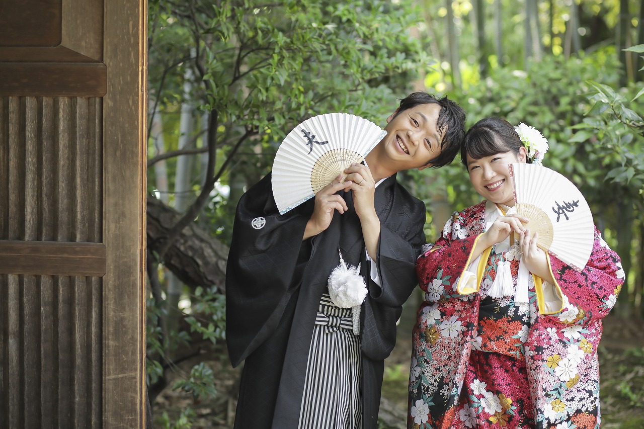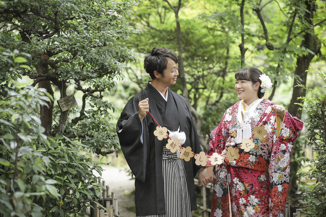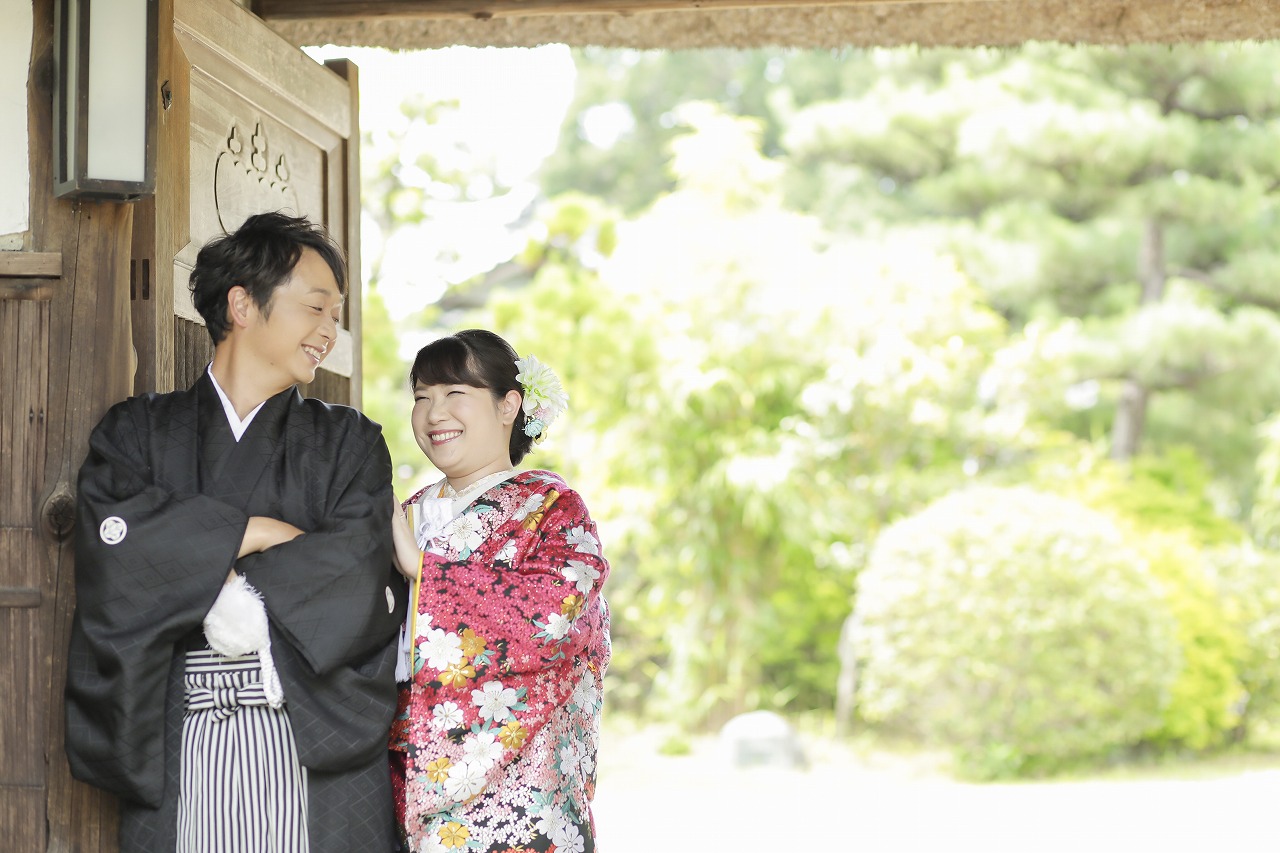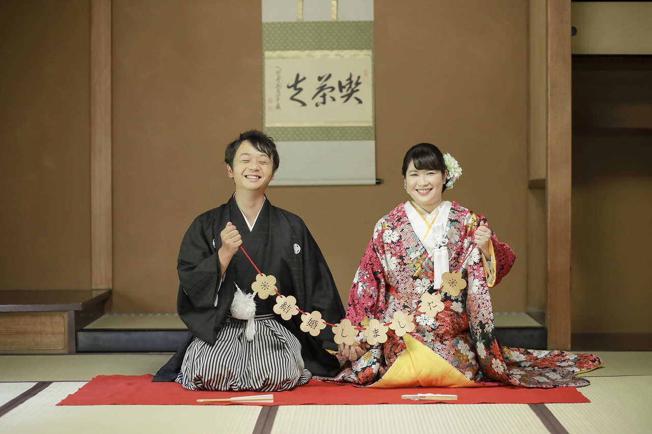 新婦様のピンク色の可愛い桜の色打掛、新郎様のキリっとした紋付姿お二人共良くお似合いでした♡