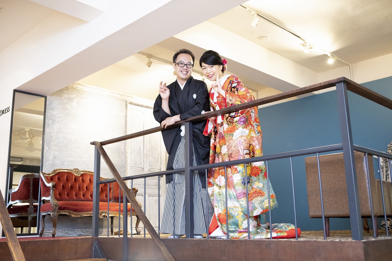 夕暮れのアトリエスタジオでモダンに和装撮影。 | 名古屋の前撮り&フォトウェディング【公式】WEDDING AVENUE