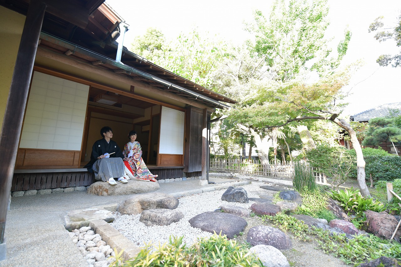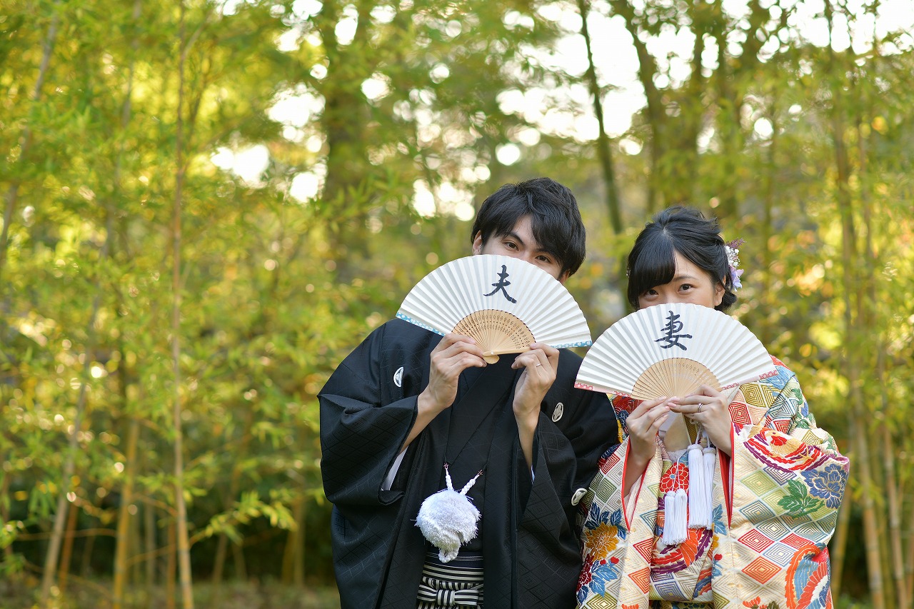 スタジオで洋装撮影をして頂きその後中村公園での和装撮影。